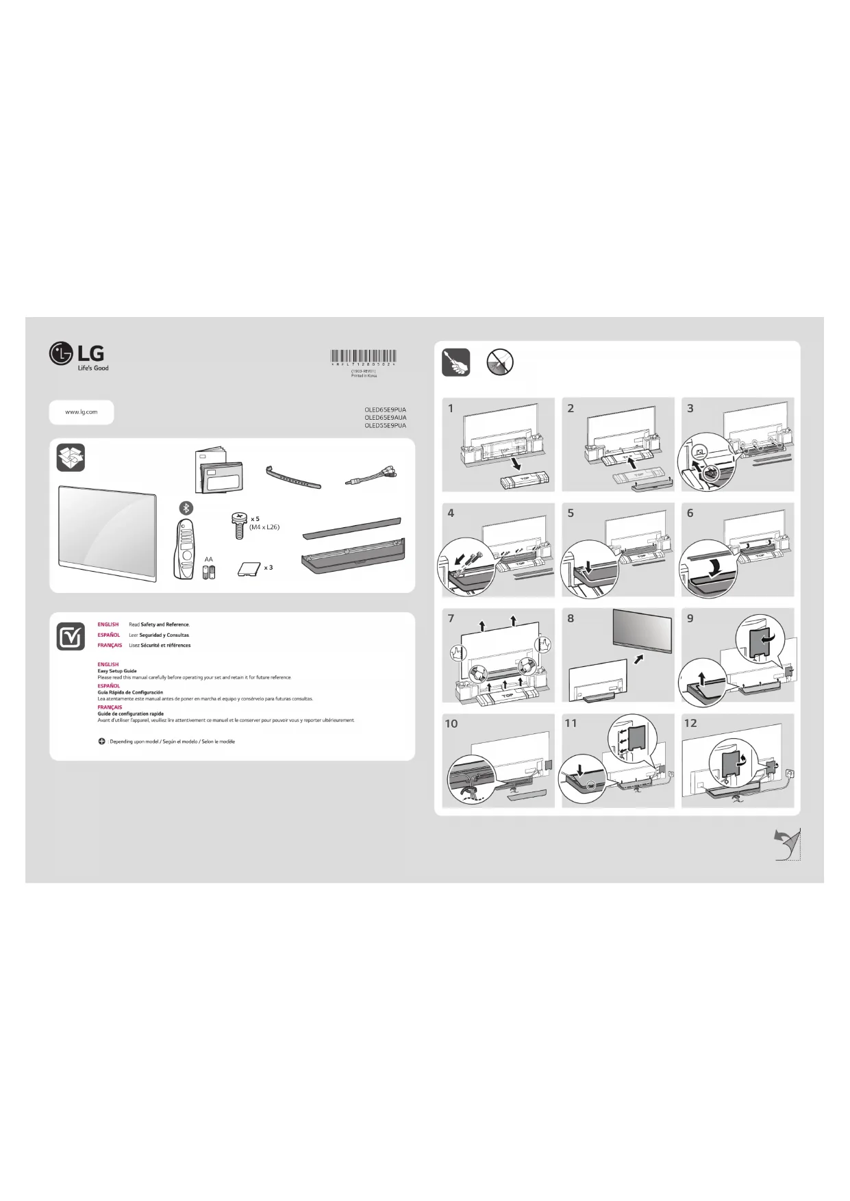Retrouvez gratuitement la notice de l'appareil OLED55E9PUA LG au format PDF.