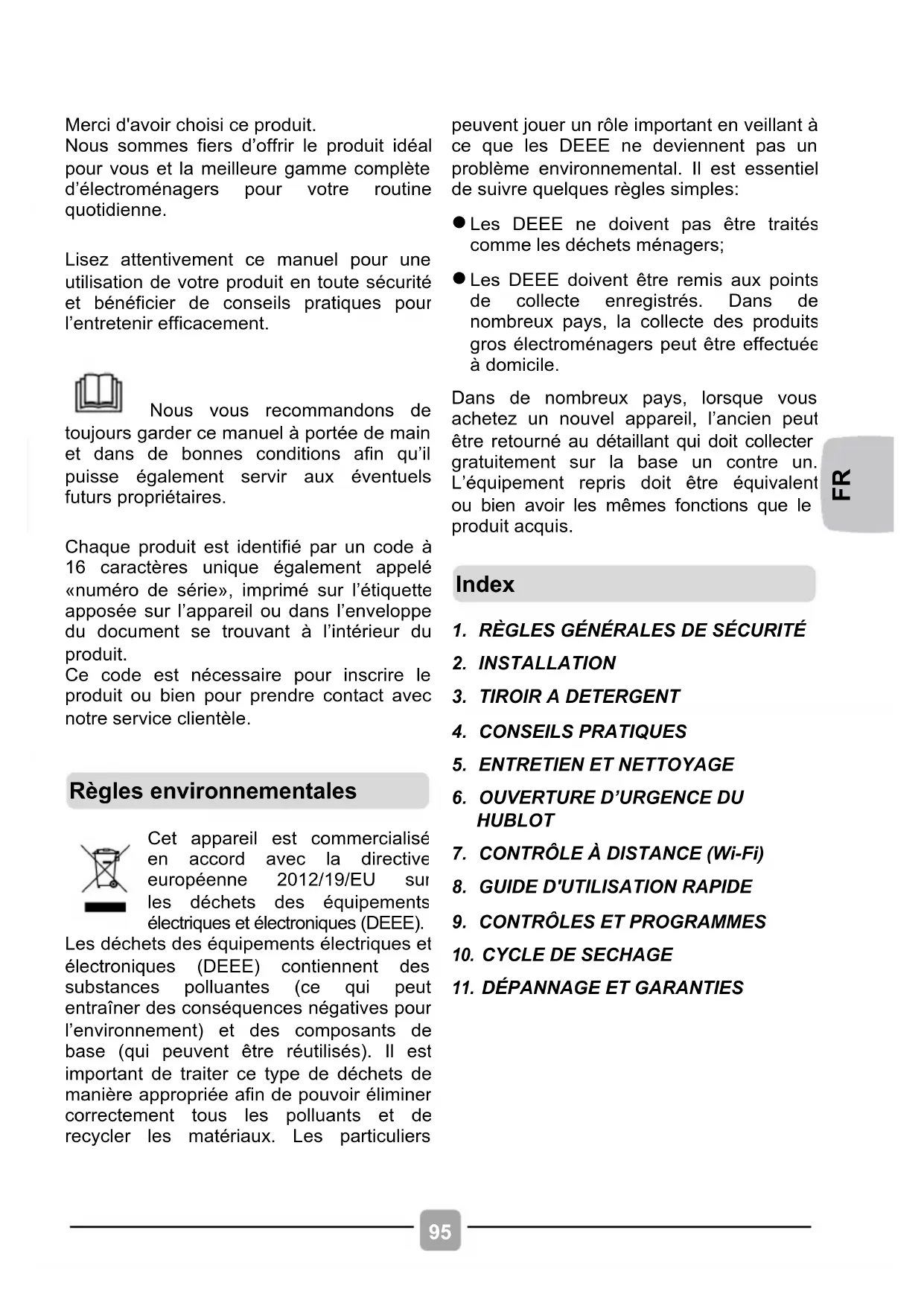 Les DEEE doivent être remis aux points de collecte enregistrés. Dans de nombreux pays, la collecte des produits gros électroménagers peut être effectuée à domicile.
