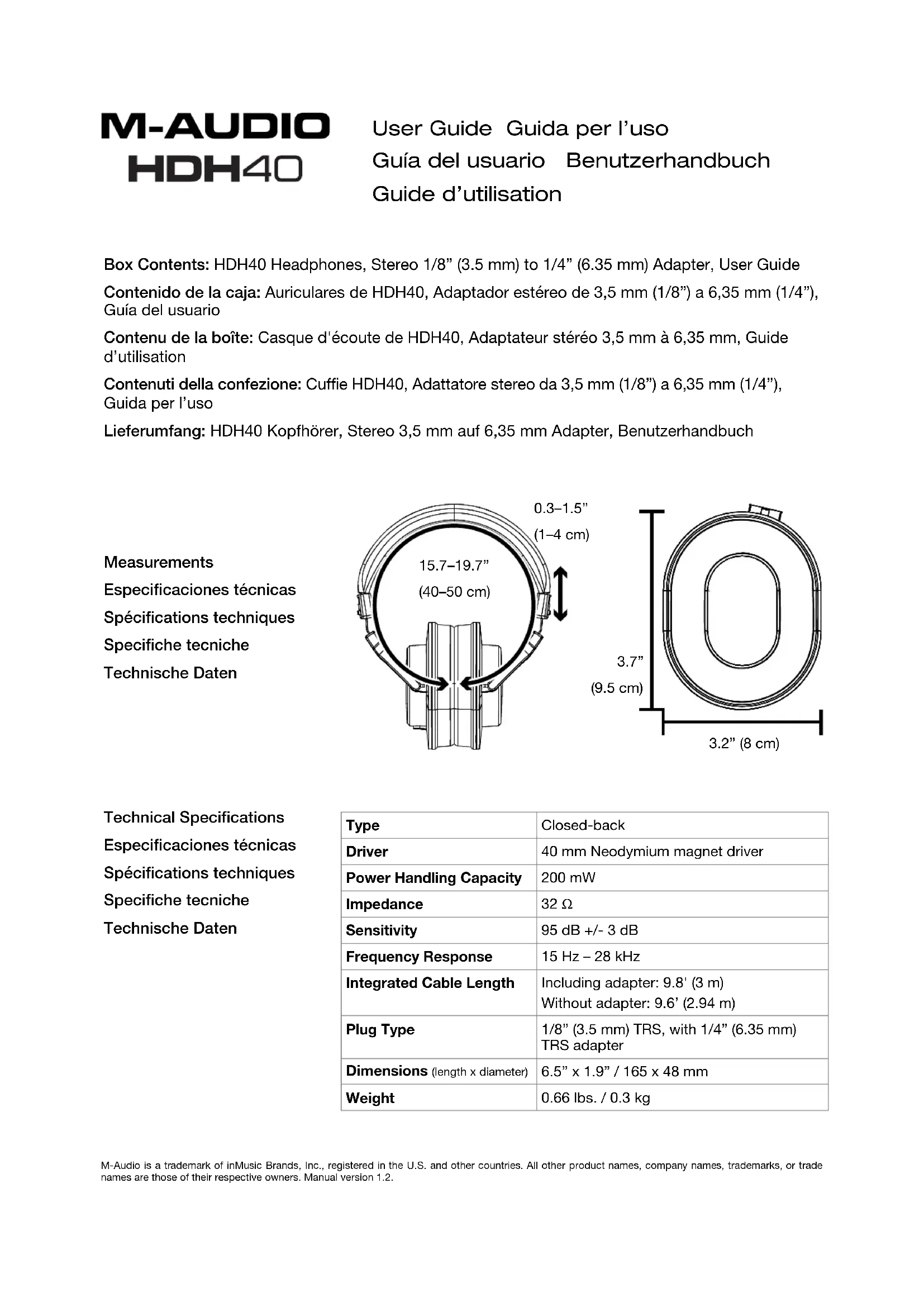 Retrouvez gratuitement la notice de l'appareil HDH40 M-AUDIO au format PDF.