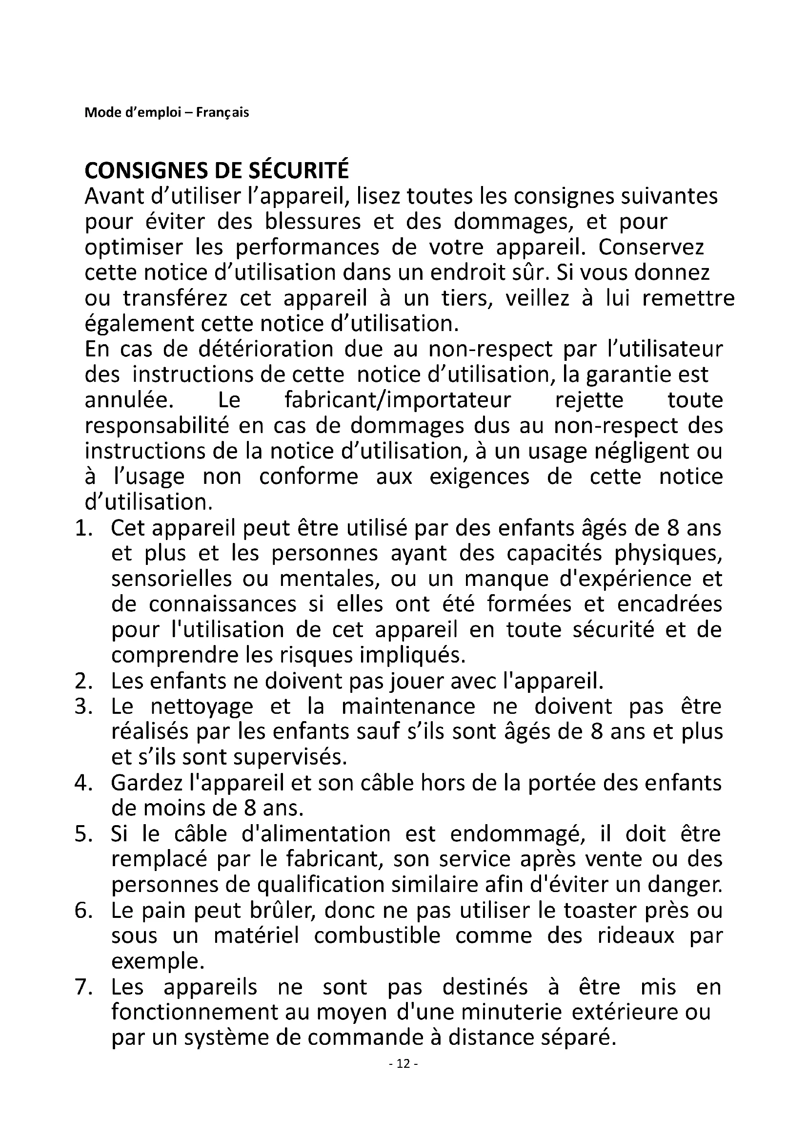- Le pain peut brûler, donc ne pas utiliser le toaster après ou sous un matériel combustible comme des rideaux par exemple.