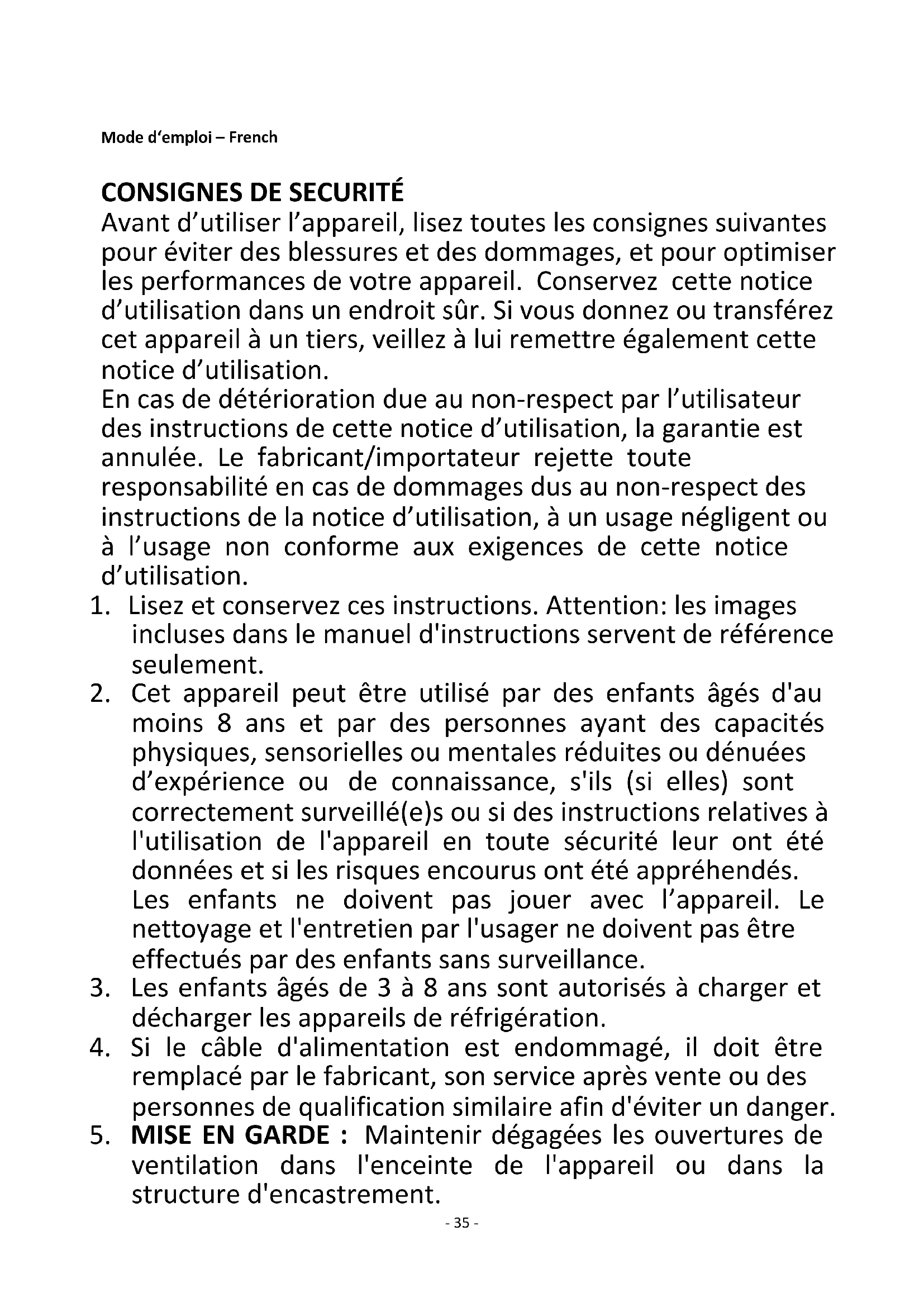 33. Veillez à ce que les enfants ne jouent pas avec l’appareil.