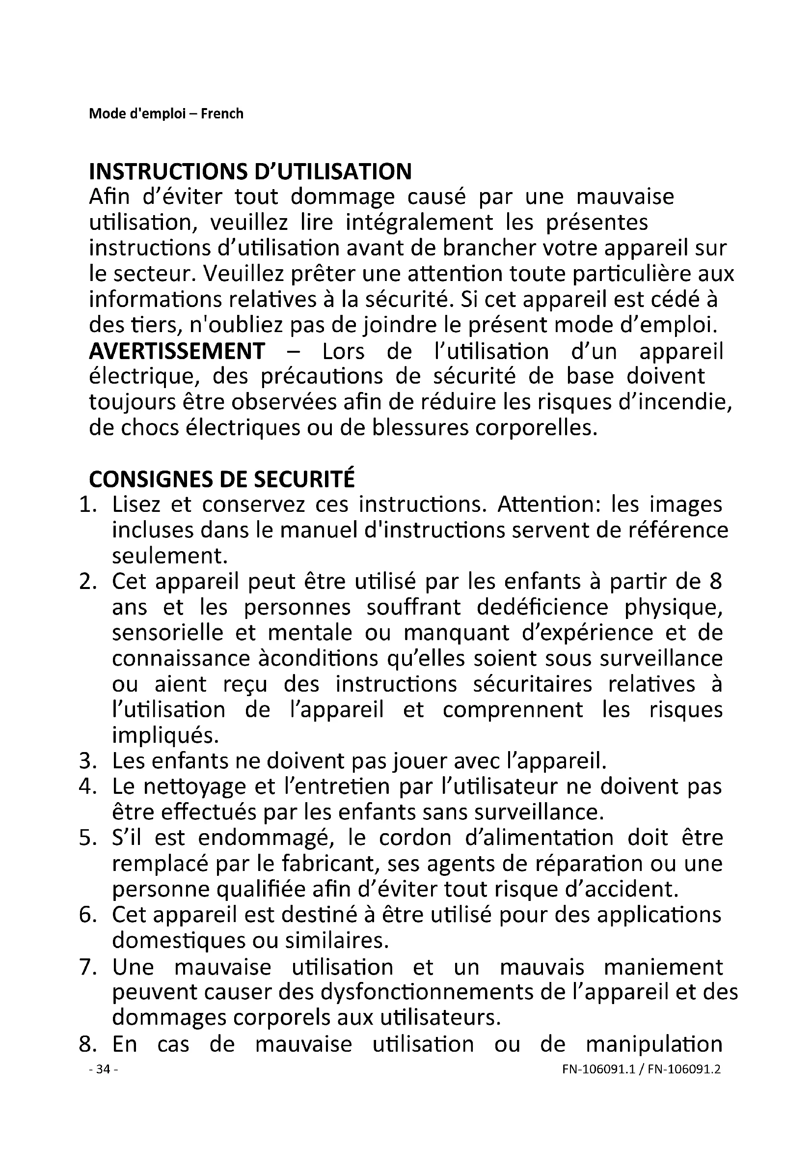 8. En cas de mauvaise utilisation ou de manipulation- 35 - FN-106091.1 / FN-106091.2