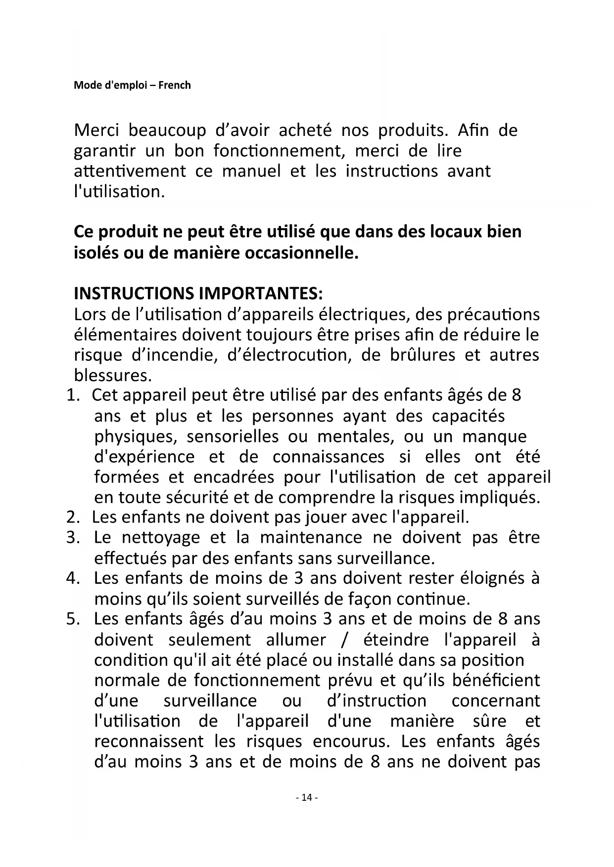 2. Les enfants ne doivent pas jouer avec l'appareil.