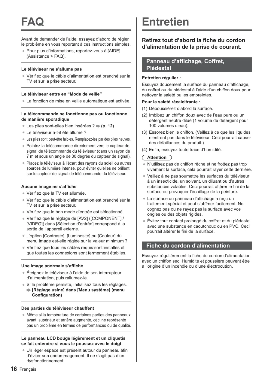 FOIRE AUX QUESTIONS - TX-42AS520E PANASONIC