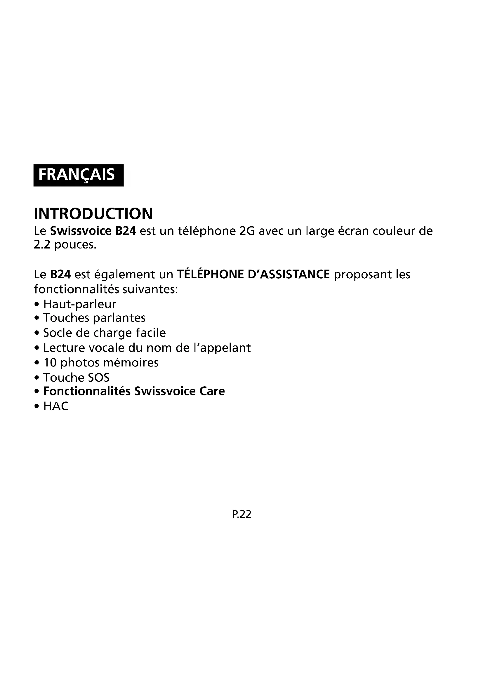 Retrouvez gratuitement la notice de l'appareil B24 SWISSVOICE au format PDF.