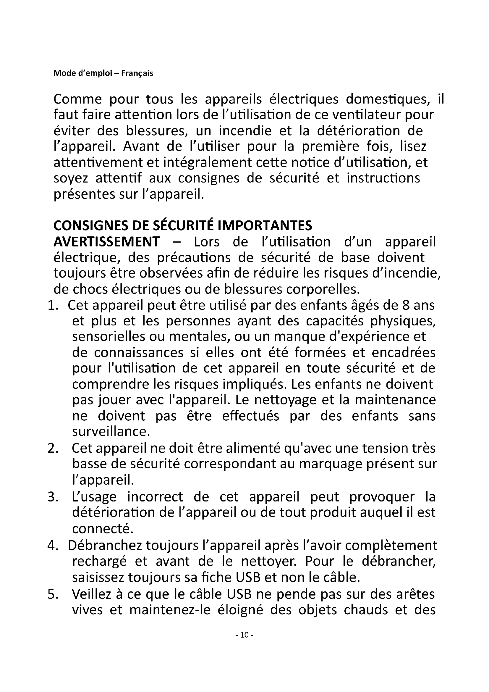 rechargé et avant de le nettoyer. Pour le débrancher, saisissez toujours sa fiche USB et non le câble.