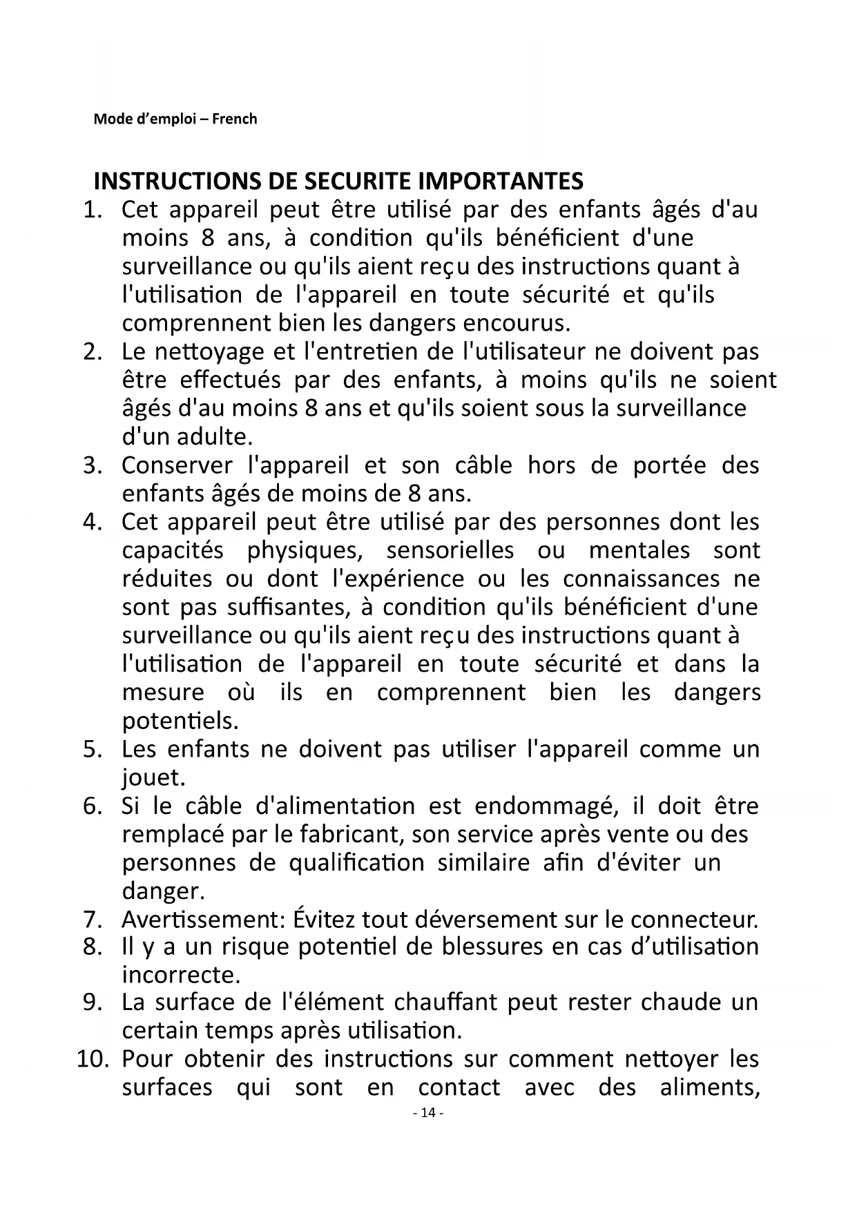 1. Cet appareil peut être utilisé par des enfants âgés d'au