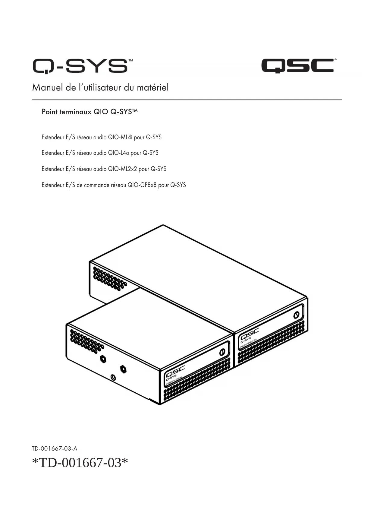 Manuel de l’utilisateur du matériel Point terminaux QIO Q-SYS™ Extendeur E/S réseau audio QIO-ML4i pour Q-SYS Extendeur E/S réseau audio QIO-L4o pour Q-SYS Extendeur E/S réseau audio QIO-ML2x2 pour Q-SYS Extendeur E/S de commande réseau QIO-GP8x8 pour Q-SYS