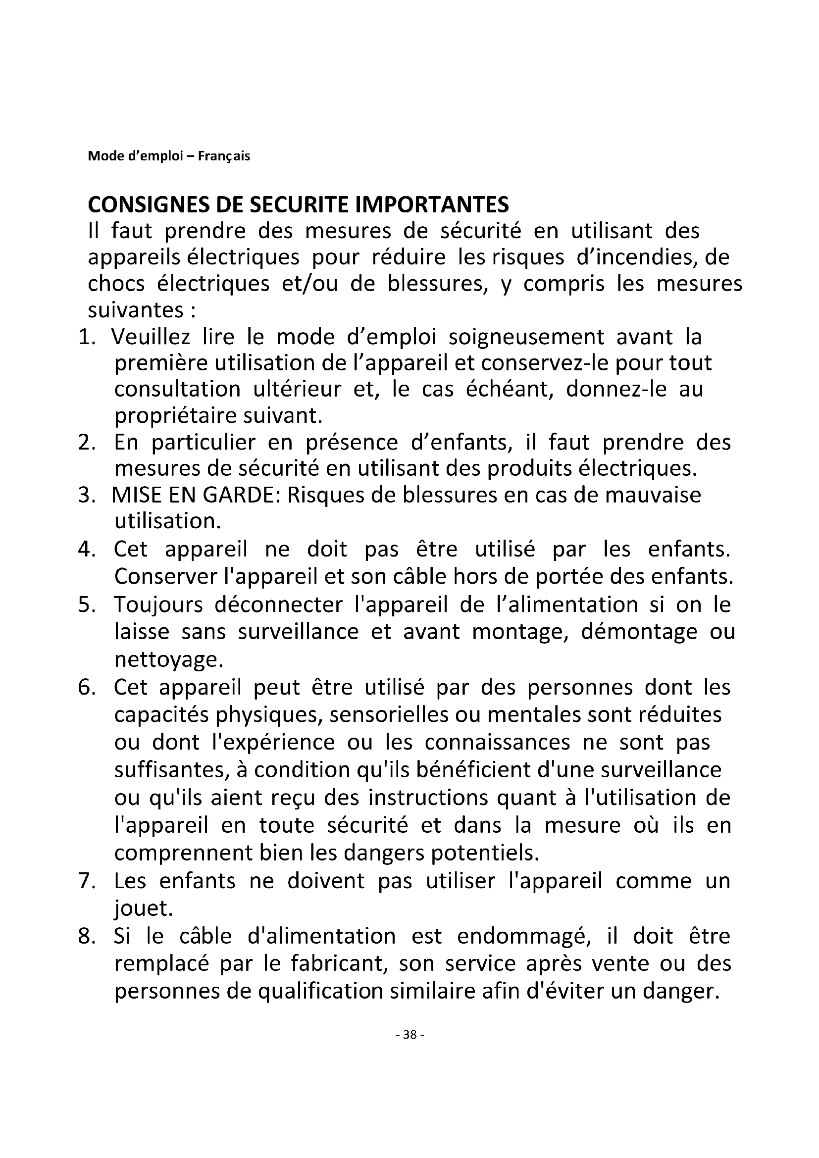 4. Cet appareil ne doit pas être utilisé par les enfants.