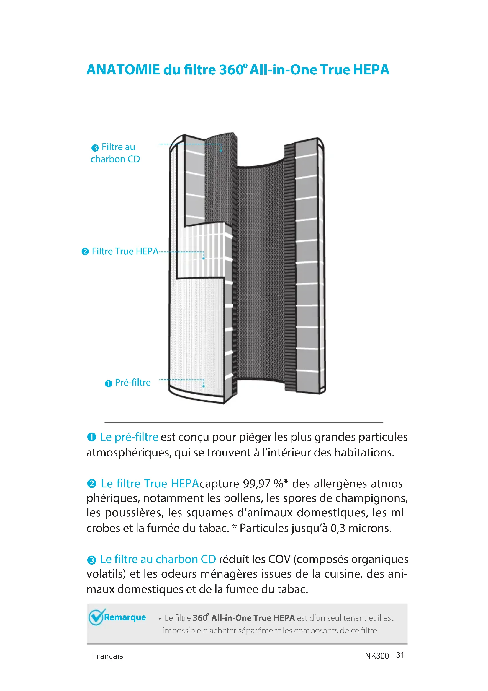 All-in-One True HEPA est d’un seul tenant et il est impossible d’acheter séparément les composants de ce filtre. RemarqueFrançais