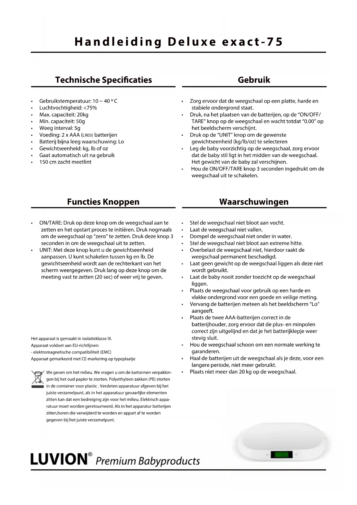 Retrouvez gratuitement la notice de l'appareil Exact75 Luvion au format PDF.