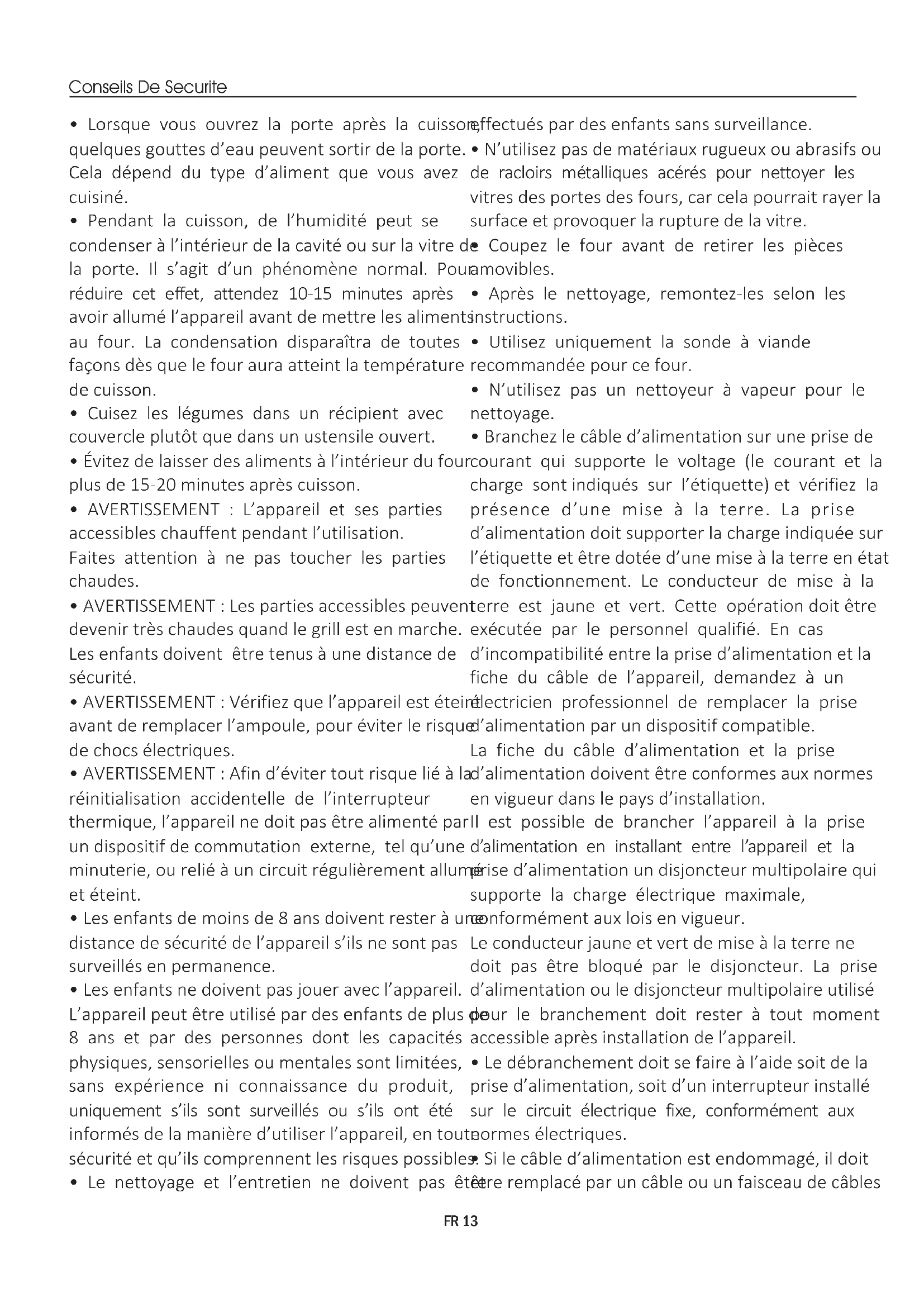 - Si le câble d’alimentation est endommagé, il doit être remplacé par un câble ou un faisceau de câbles Conseils De Securite FR 13spécial disponible auprès du fabricant ou du service après-vente.