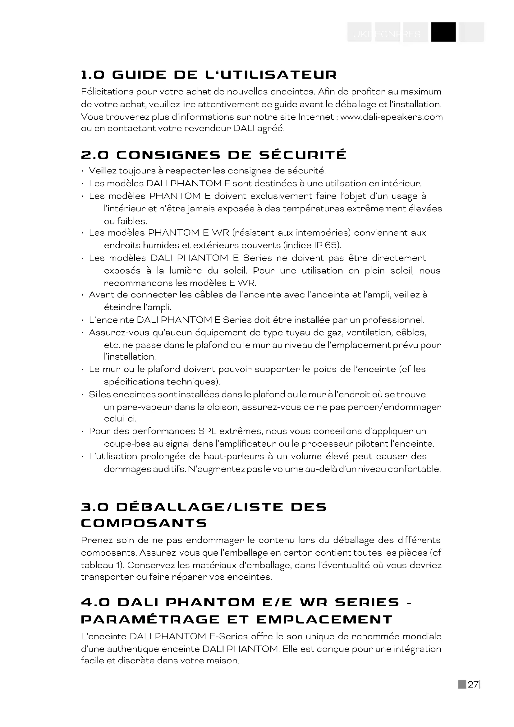 - Les modèles DALI PHANTOM E sont destinées à une utilisation en intérieur.