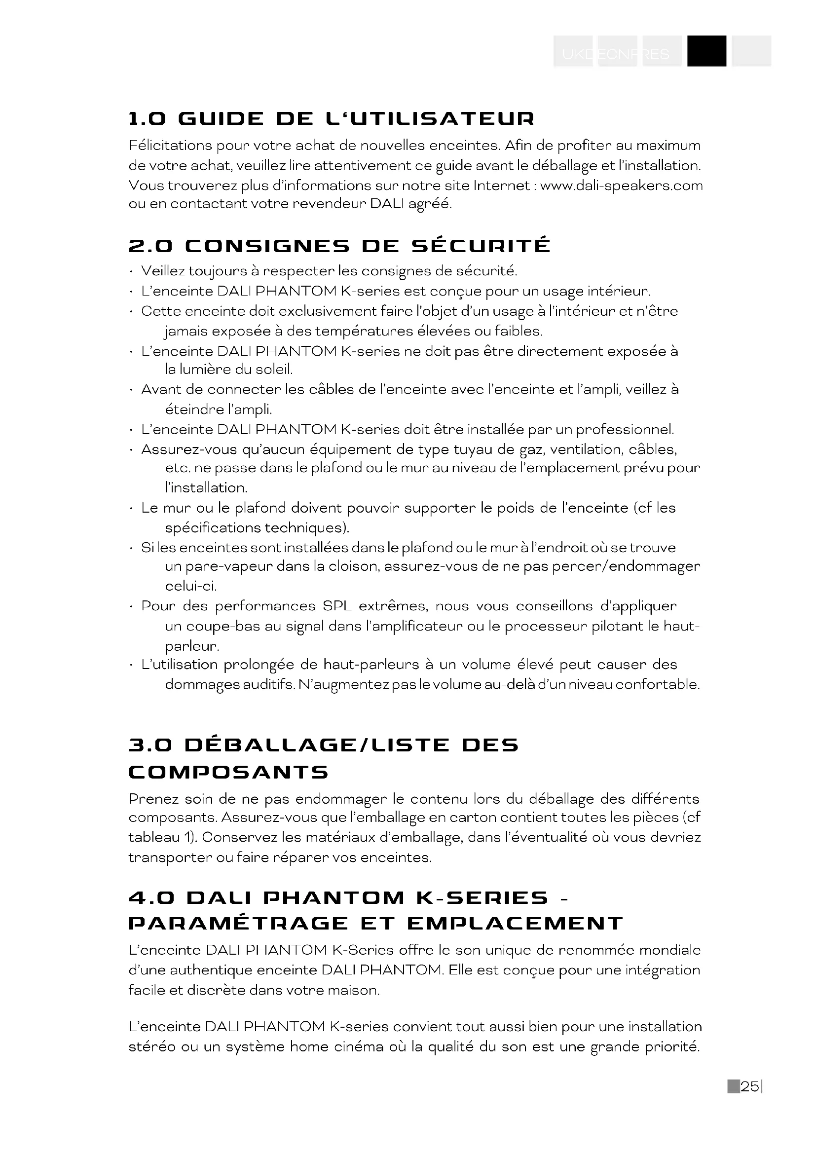 - L’enceinte DALI PHANTOM K-series doit être installée par un professionnel.