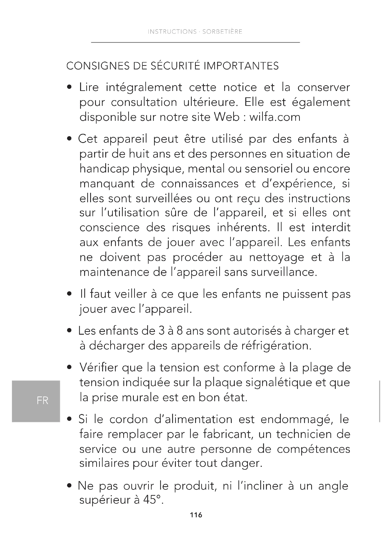 - Les pièces devant être remplacées régulièrement (par exemple, filtre, batterie, etc.) Le manuel d’instructions est également disponible sur notre site Web: wilfa.com127