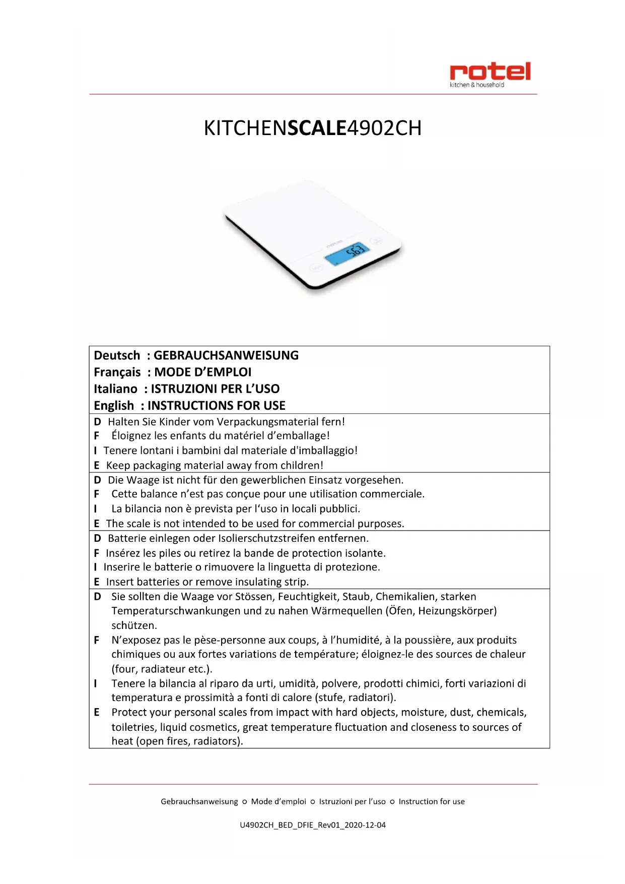 U4902CH - Balances de cuisine ROTEL - Notice d'utilisation et mode d'emploi gratuit