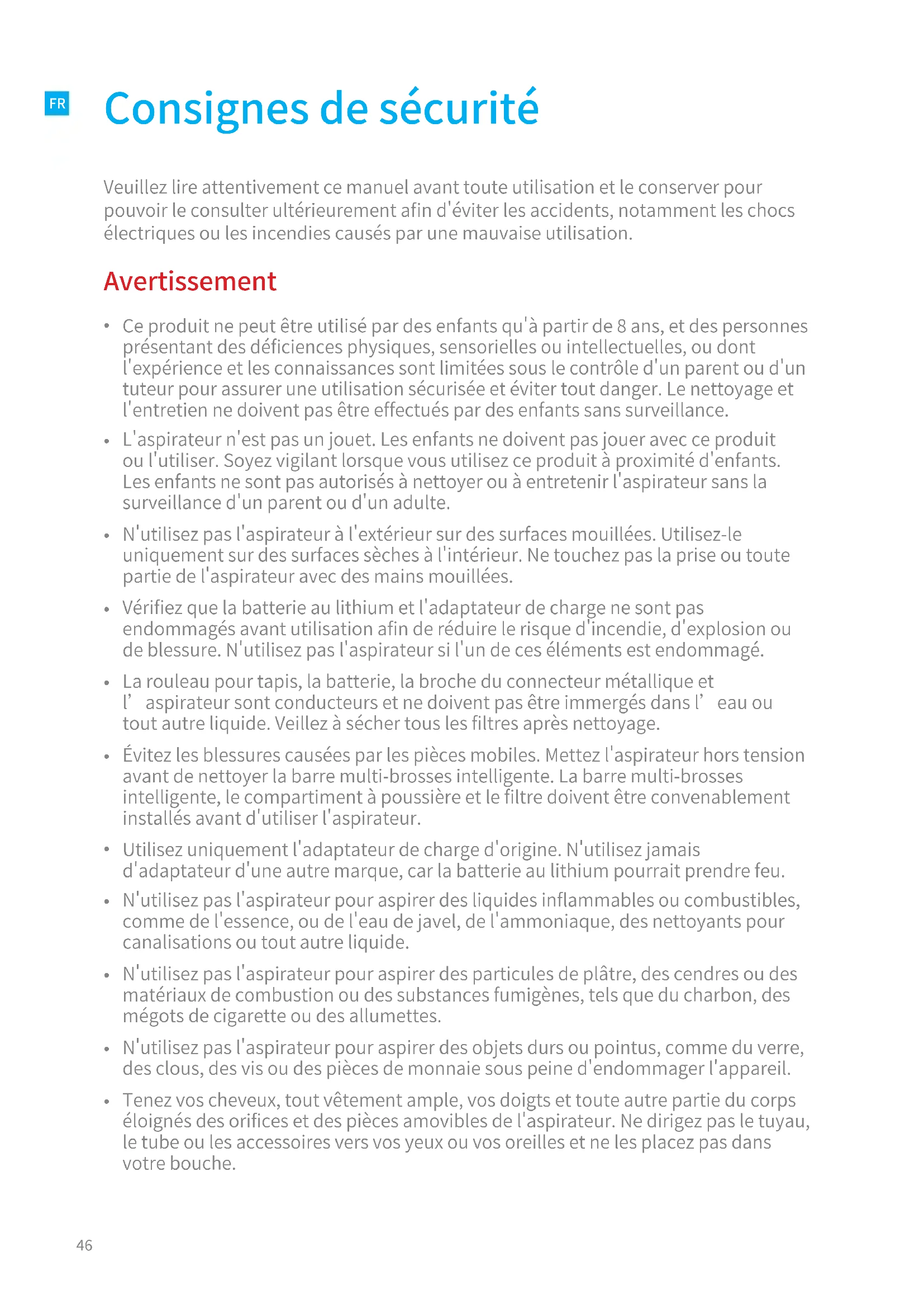 L'aspirateur n'est pas un jouet. Les enfants ne doivent pas jouer avec ce produit ou l'utiliser. Soyez vigilant lorsque vous utilisez ce produit à proximité d'enfants. Les enfants ne sont pas autorisés à nettoyer ou à entretenir l'aspirateur sans la surveillance d'un parent ou d'un adulte.