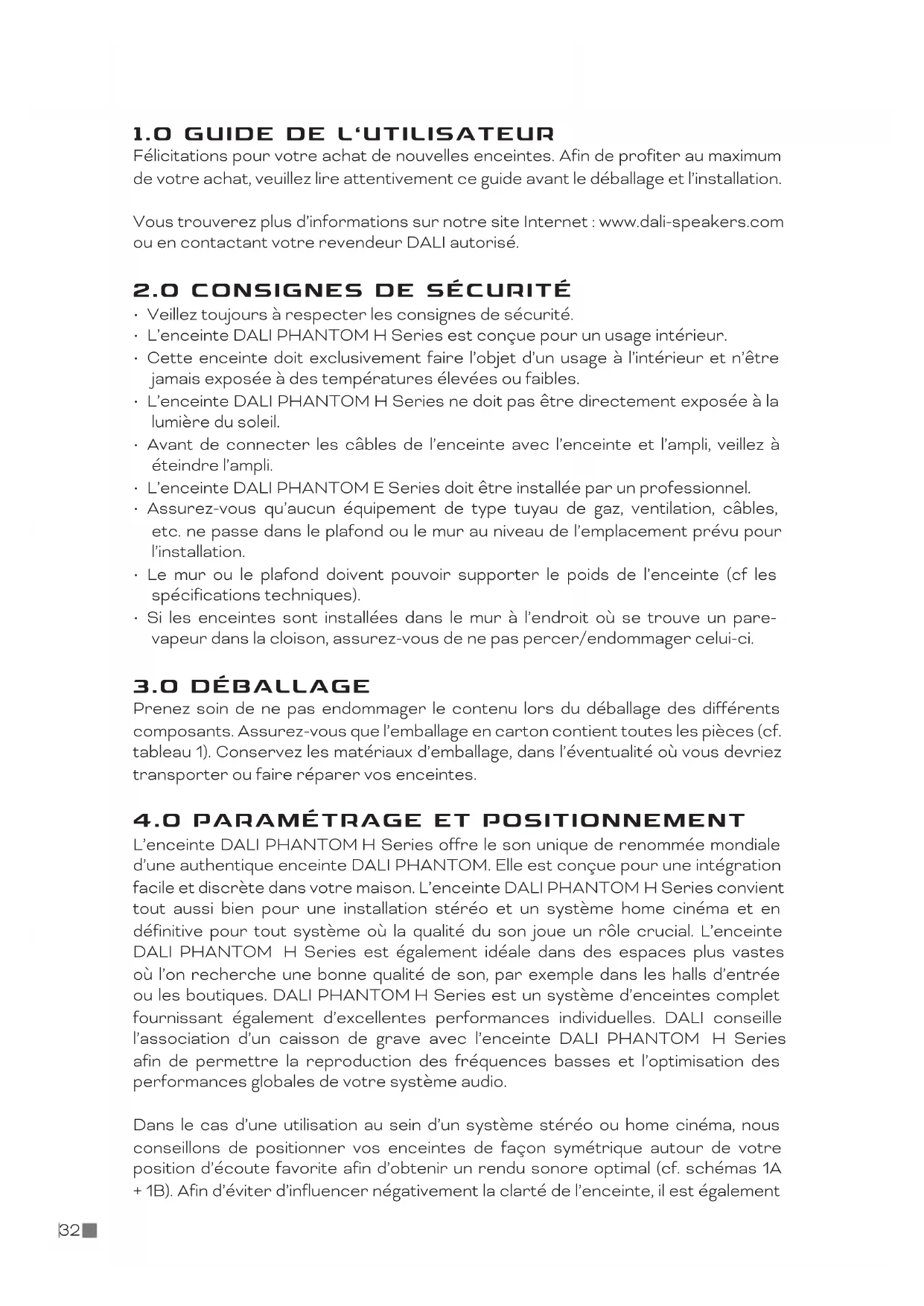 - L’enceinte DALI PHANTOMH Series est conçue pour un usage intérieur.