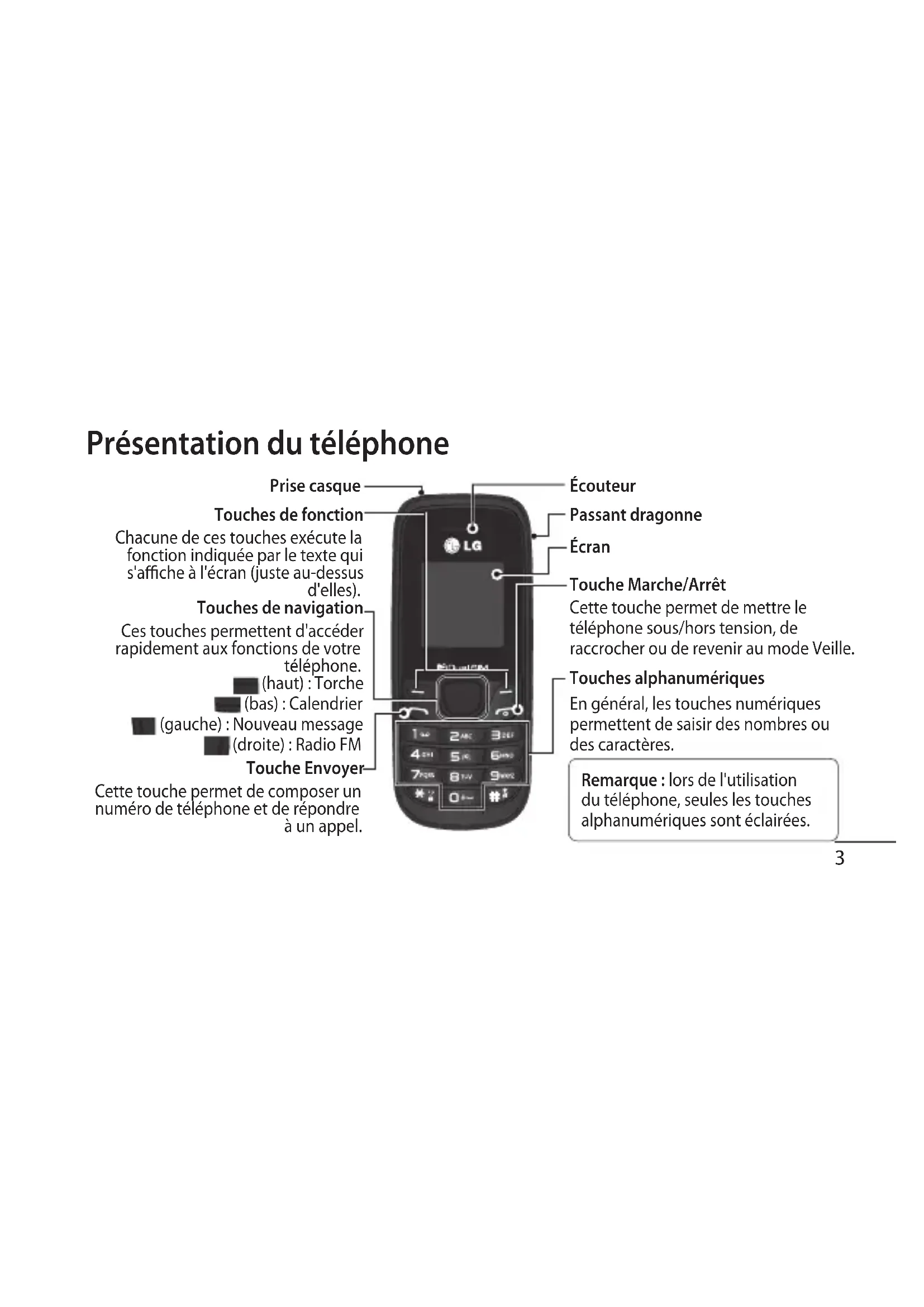 - LG-A275 P/N : MFL67478224(1.0) www.lg.com Guide de l’utilisateur Manual do Utilizador User Guide F R A N Ç A I S PORTUGUÊS E N G L I S H0800-9811-5454(LGLG) 100% Toll Free 4 Adepele street, Computer Villege, Lagos, NigeriaLG-A275 Guide de l'utilisateur - Français Ce guide va vous aider à mieux comprendre votre nouveau téléphone portable. Vous y trouverez des informations utiles sur les fonctions de votre téléphone. Ce manuel peut présenter des diérences par rapport à votre téléphone, en fonction de la version du micrologiciel utilisé ou de votre fournisseur de services.2 Présentation du téléphone p. 3