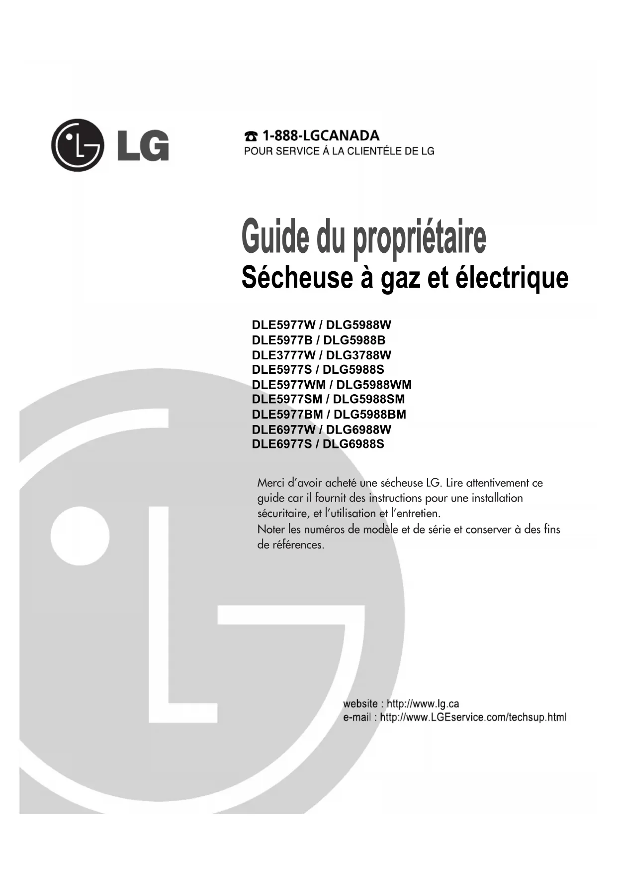 Merci d’avoir acheté une sécheuse LG. Lire attentivement ce guide car il fournit des instructions pour une installation sécuritaire, et l’utilisation et l’entretien. Noter les numéros de modèle et de série et conserver à des fins de références.CARACTÉRISTIQUES DU PRODUIT