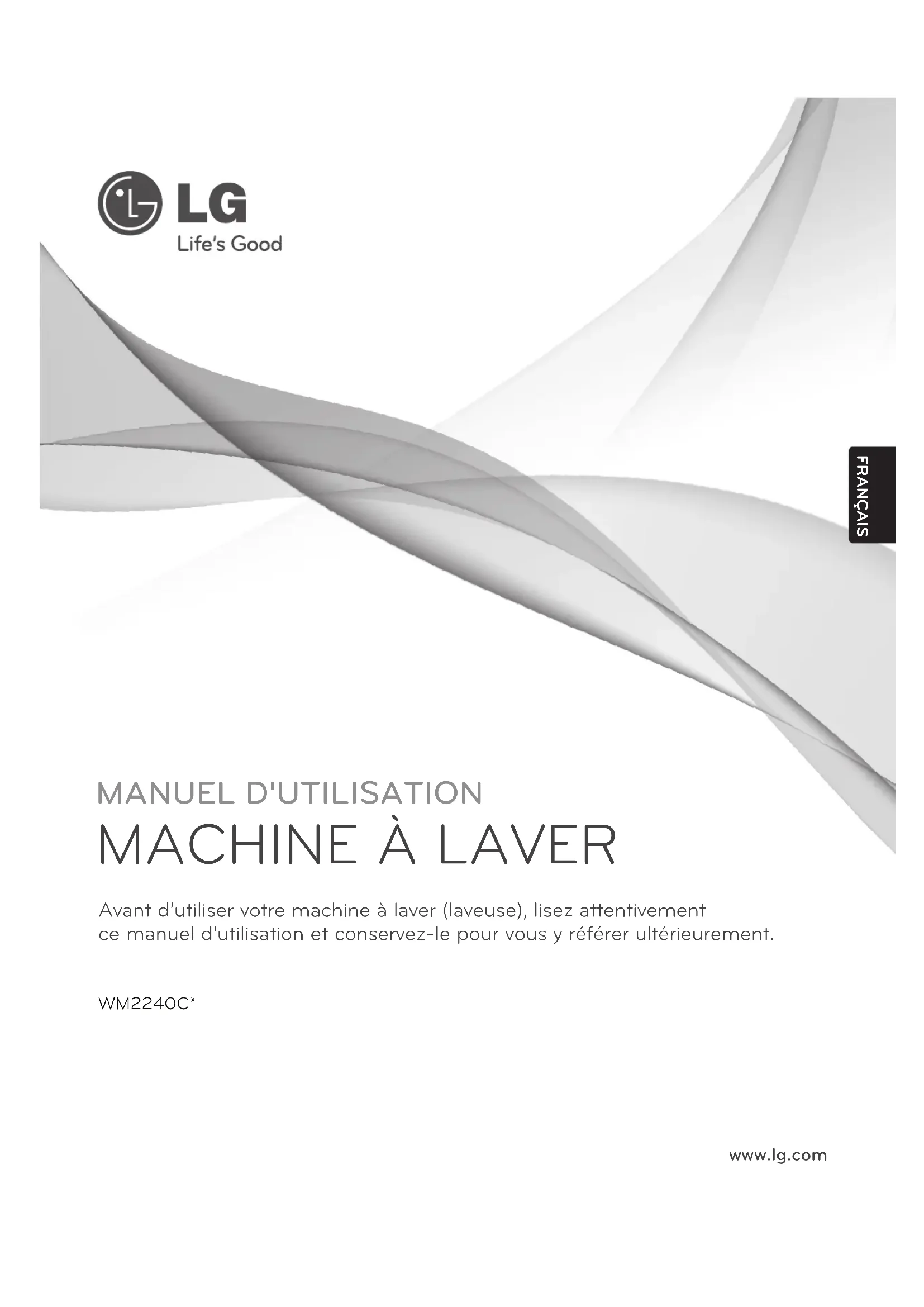 PARA CONTACTAR A Lg ELECTRONICS POR CORREO: LG Customer Información Center P. O. Box 240007 201 James Record Road Huntsville, Alabama 35824 ATTN: CIC NÚMEROS DE CENTROS INFORMACIÓN DE CLIENTE 33~ NOTA 34ESPAÑOL NOTA 35~ NOTA 36MANUEL D'UTILISATION MACHINE À LAVER WM2240C* Avant d’utiliser votre machine à laver (laveuse), lisez attentivement ce manuel d'utilisation et conservez-le pour vous y référer ultérieurement. www.lg.com FRANÇAISINTRODUCTION Félicitations pour votre achat et bienvenue dans la famille LG. Votre nouvelle machine à laver LG associe la technologie de lavage la plus avancée à un fonctionnement simple et une efficacité supérieure. Si vous suivez les consignes d’utilisation et d’entretien de ce manuel, votre machine à laver vous assurera de nombreuses années de service fiable. MERCI!