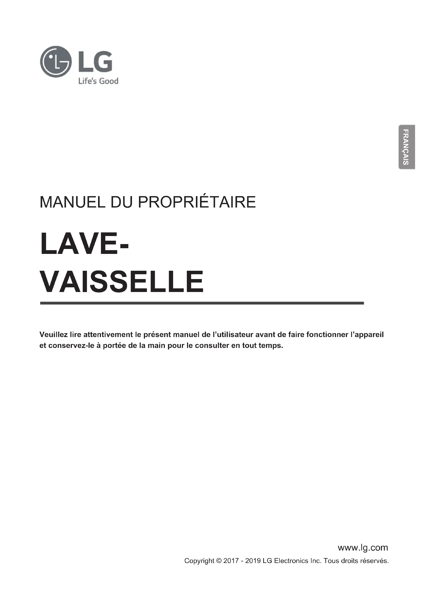 LAVE- VAISSELLE Veuillez lire attentivement le présent manuel de lʼutilisateur avant de faire fonctionner lʼappareil et conservez-le à portée de la main pour le consulter en tout temps. Copyright © 2017 - 2019 LG Electronics Inc. Tous droits réservés. www.lg.com2