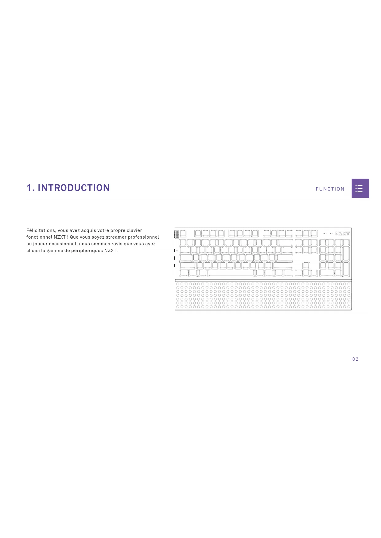 Félicitations, vous avez acquis votre propre clavier fonctionnel NZXT! Que vous soyez streamer professionnel ou joueur occasionnel, nous sommes ravis que vous ayez choisi la gamme de périphériques NZXT.03 FUNCTION