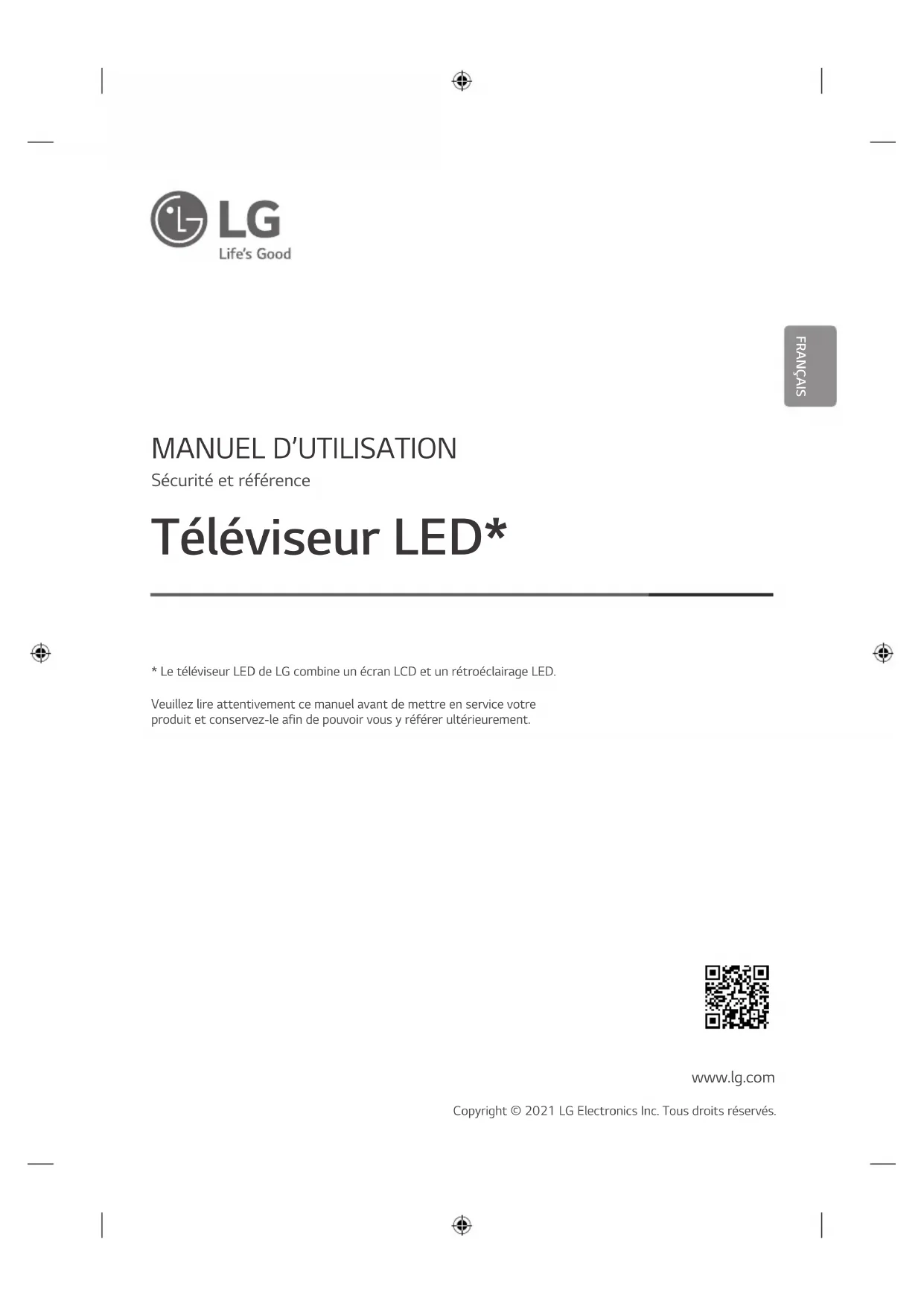 www.lg.com Copyright © 2021 LG Electronics Inc. Tous droits réservés. Veuillez lire attentivement ce manuel avant de mettre en service votre produit et conservez-le afin de pouvoir vous y référer ultérieurement.