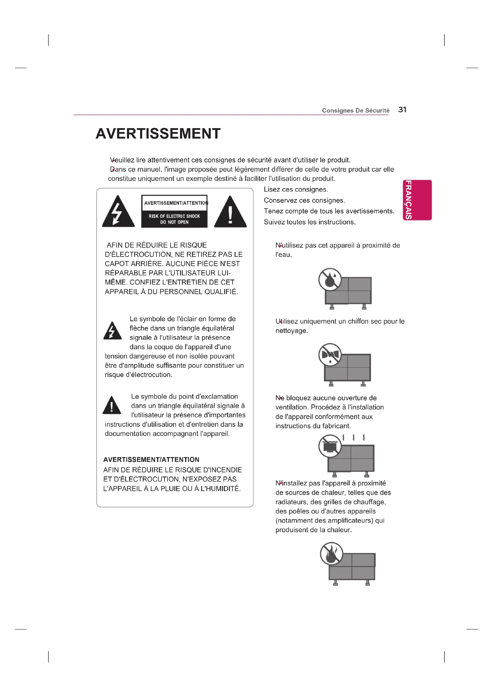 Dans ce manuel, l'image proposée peut légèrement différer de celle de votre produit car elle constitue uniquement un exemple destiné à faciliter l'utilisation du produit. aveRtiSSement aveRtiSSement/attention AFIN DE RÉDUIRE LE RISQUE D'INCENDIE