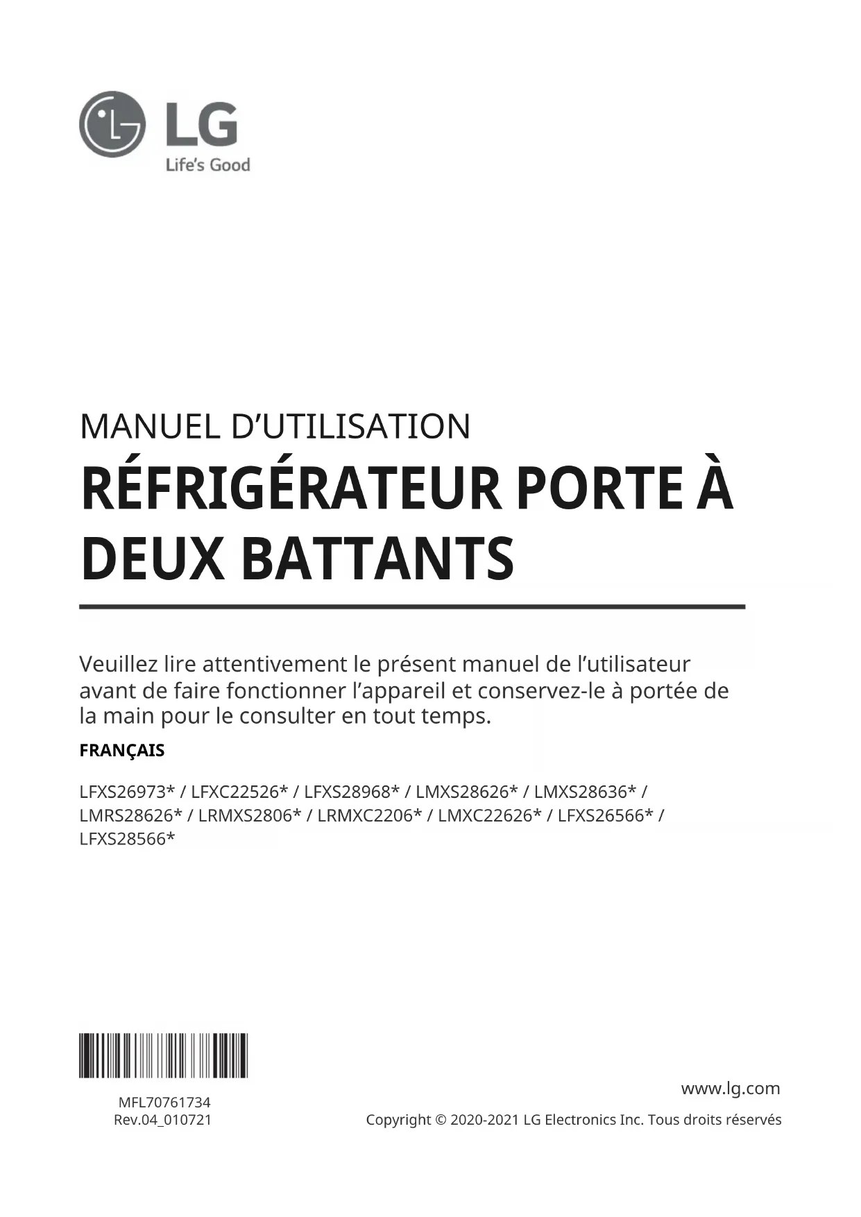 Retrouvez gratuitement la notice de l'appareil LRMXC2206S LG au format PDF.