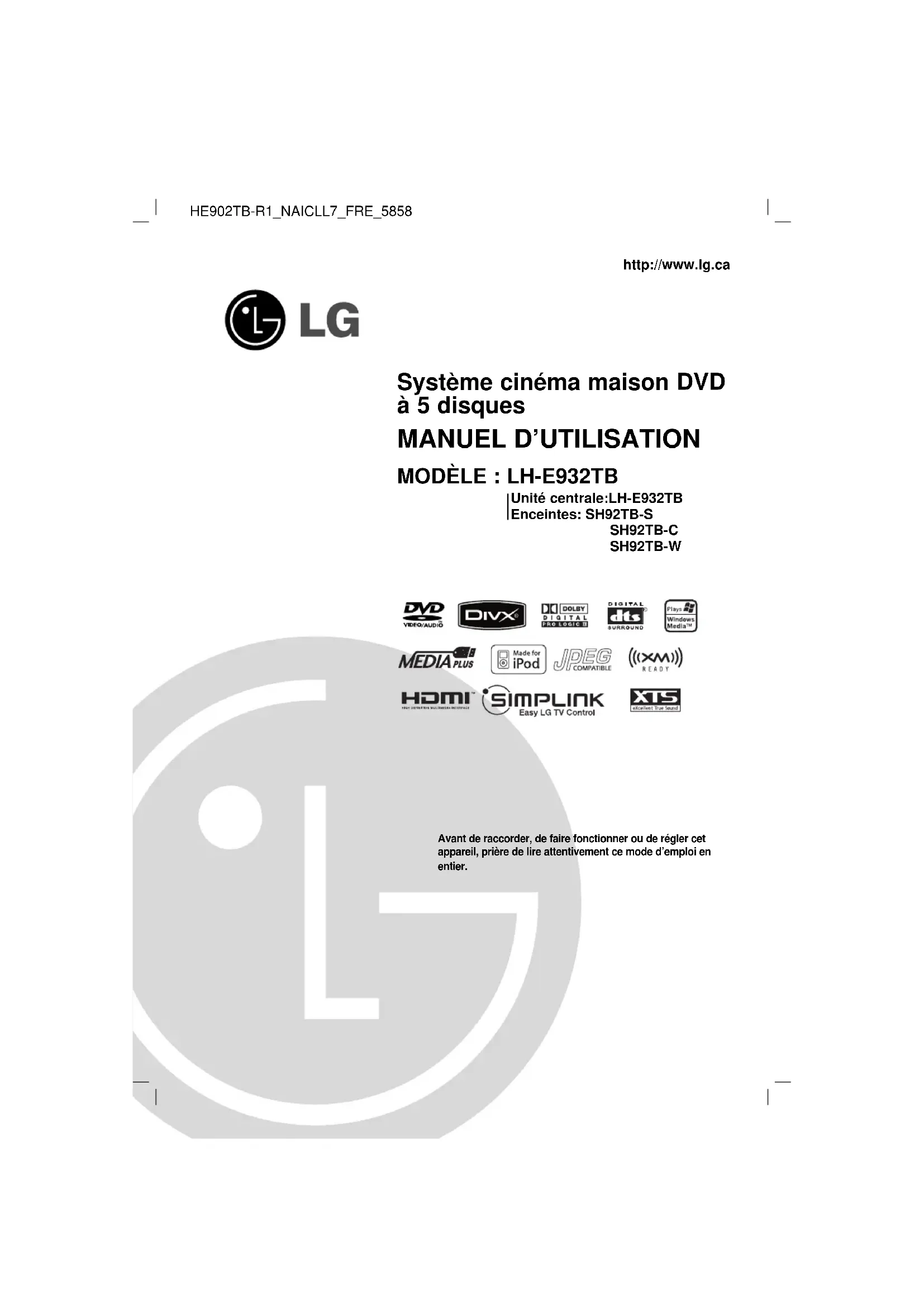 HE902TB - Système home cinéma LG - Notice d'utilisation et mode d'emploi gratuit