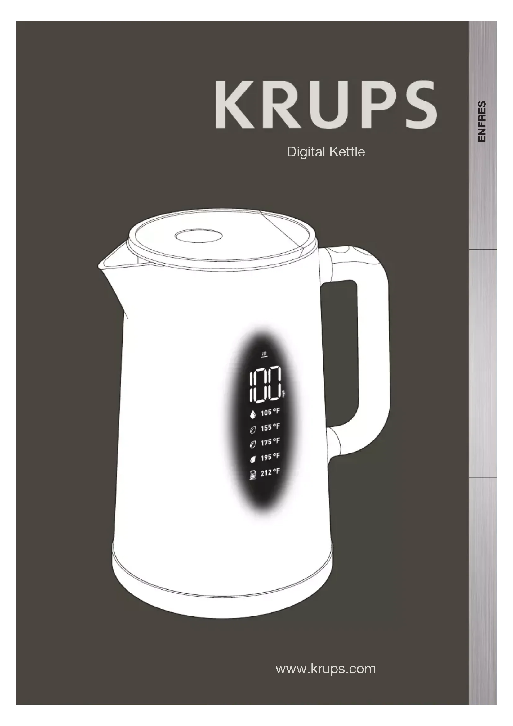 Lorsque la bouilloire est posée sur son socle, toutes les lumières s’allument. La température de l’eau dans la bouilloire s’afche sur l’écran. POUR FAIRE CHAUFFER L’EAU : 2 possibilités : – Si vous souhaitez lancer un cycle d’ébullition, appuyez sur la touche . 212°F apparaît directement sur l’écran, la bouilloire émet un bip et l’eau commence à chauffer. La bouilloire émet deux bips lorsque l’eau atteint les 212°F. Si vous souhaitez choisir la température (5 choix possibles : 105°F - 155°F - 175°F - 195°F - 212°F), appuyez sur la touche , vous verrez la température choisie s’afcher sur l’écran, appuyez sur la touche jusqu’à l’obtention de la température souhaitée, la température clignote deux secondes puis se xe, la bouilloire émet un bip puis l’eau commence à chauffer. Vous pouvez voir l’évolution de la température de l’eau s’afcher sur l’écran. Une fois la température atteinte, la bouilloire émet deux bips et s’arrête.