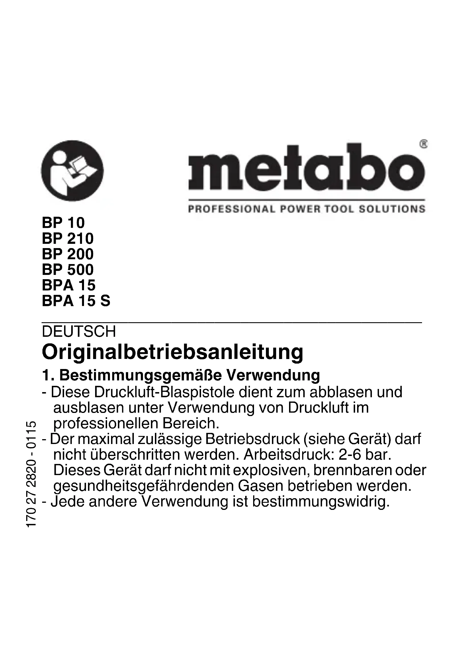 Retrouvez gratuitement la notice de l'appareil BP 200 METABO au format PDF.