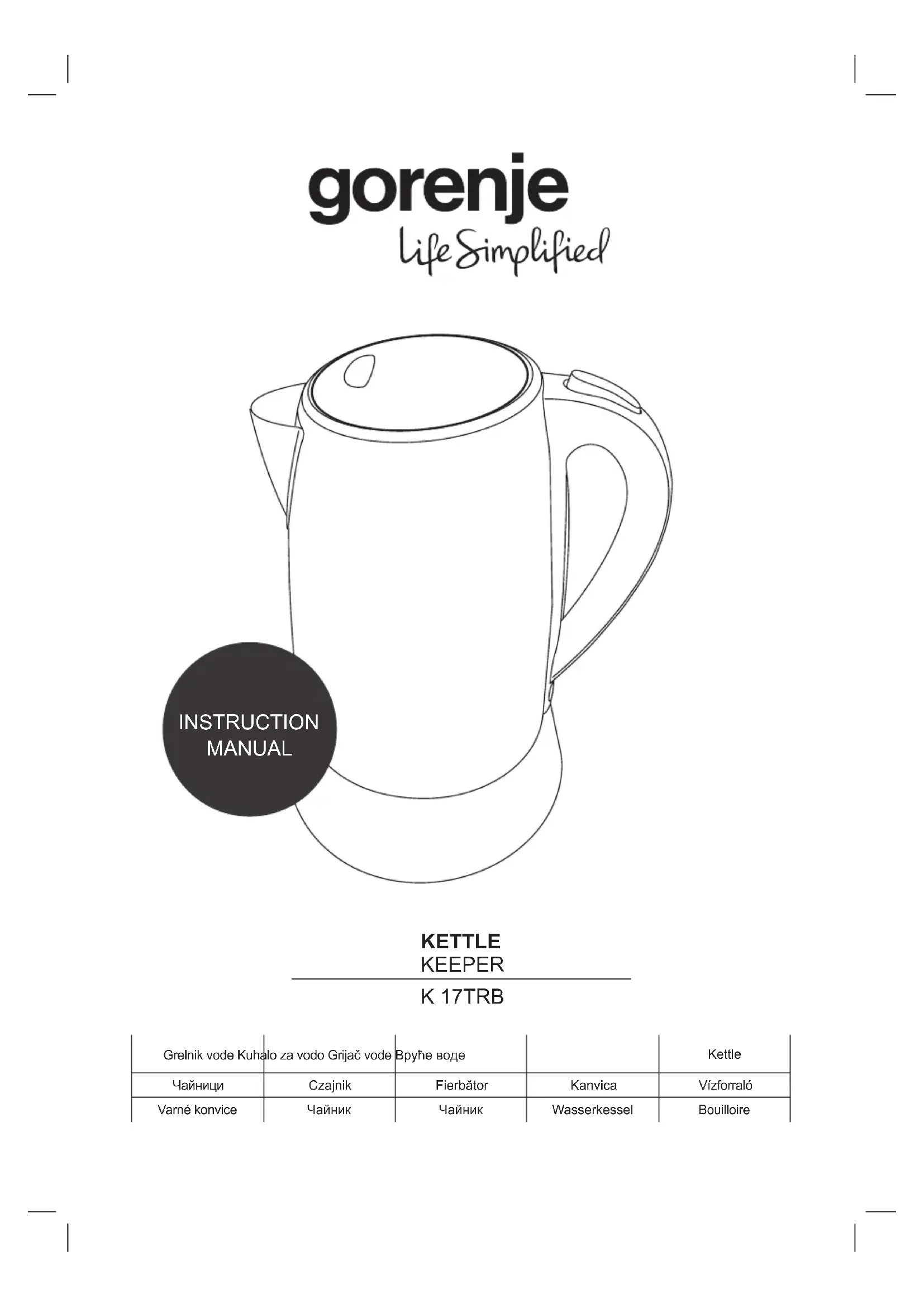 K17TRB - Bouilloire GORENJE - Notice d'utilisation et mode d'emploi gratuit