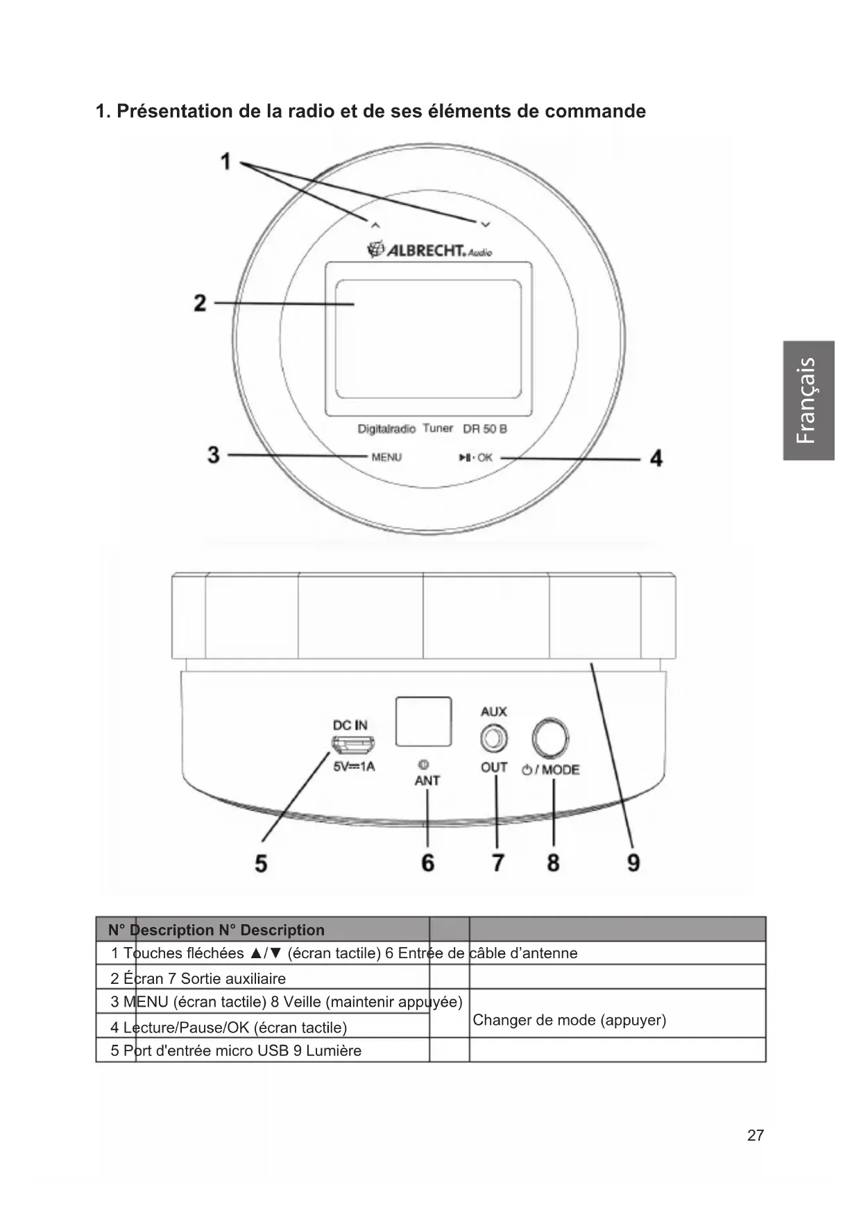 1. Présentation de la radio et de ses éléments de commande.......................................................27