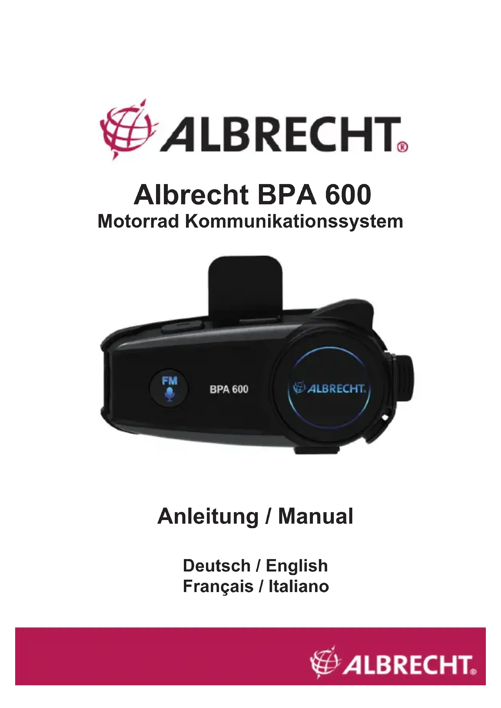 Retrouvez gratuitement la notice de l'appareil BPA 600 ALBRECHT au format PDF.
