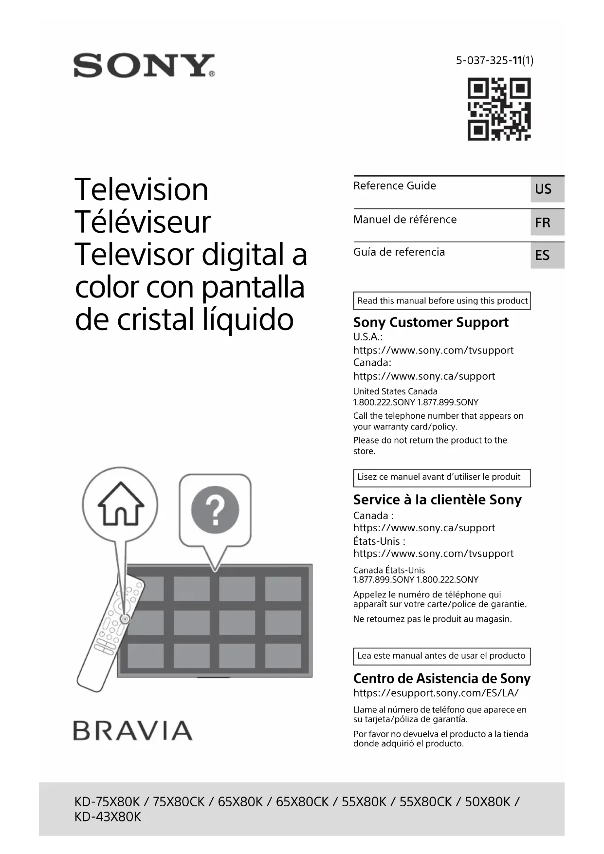 Retrouvez gratuitement la notice de l'appareil KD65X80CK SONY au format PDF.