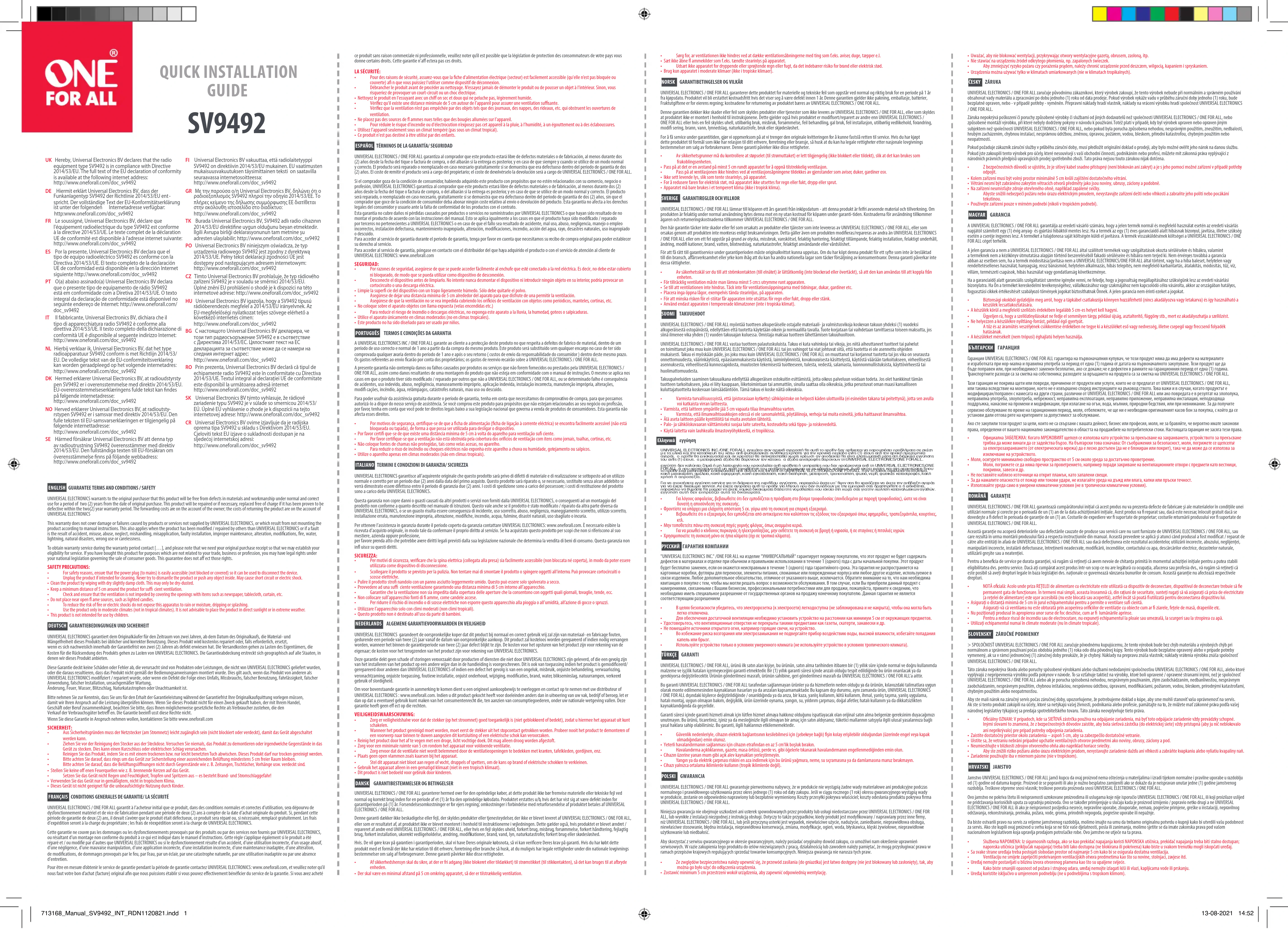 Retrouvez gratuitement la notice de l'appareil SV 9492 ONE FOR ALL au format PDF.