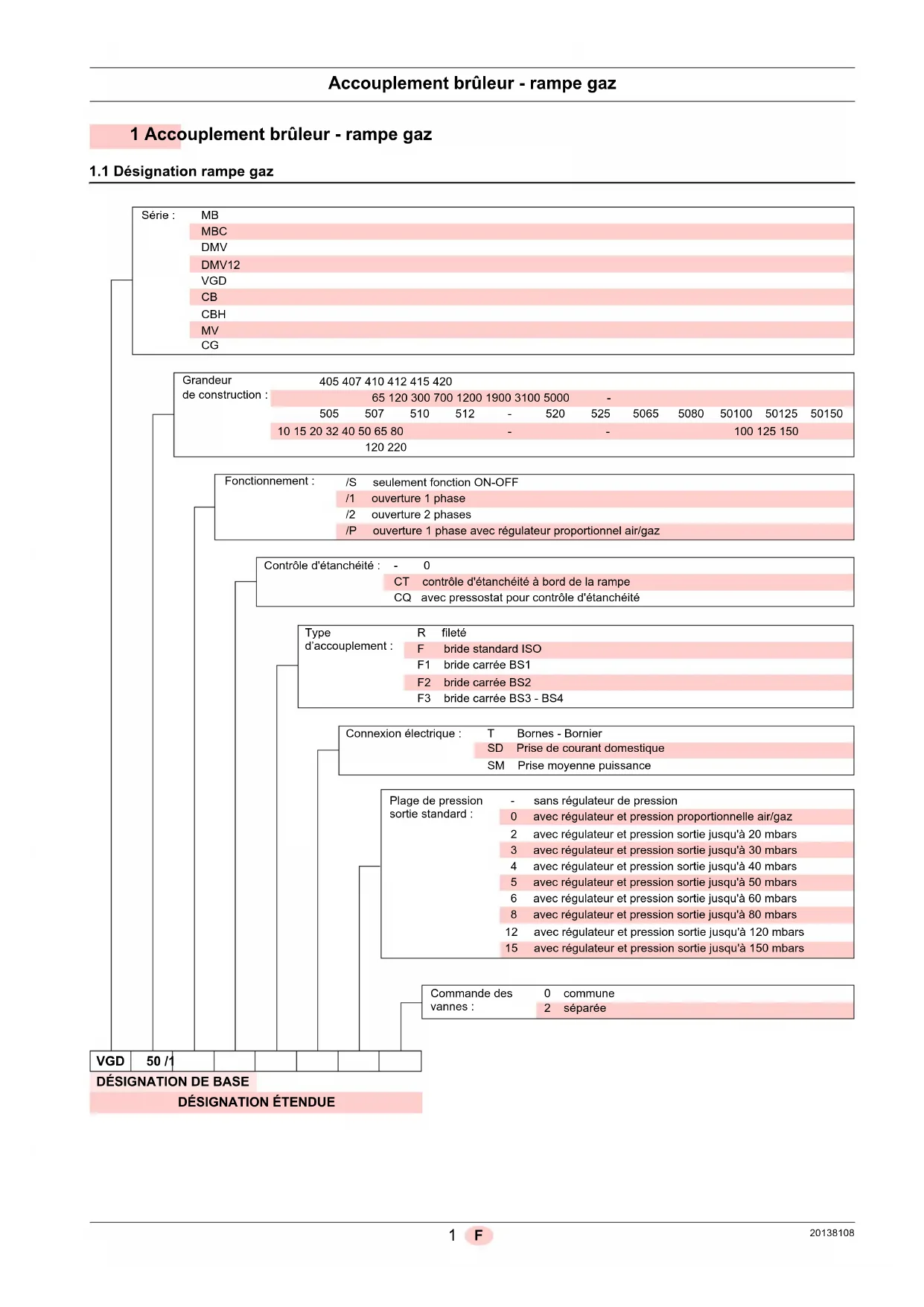 1 Accouplement brûleur - rampe gaz Série : Grandeur Fonctionnement :