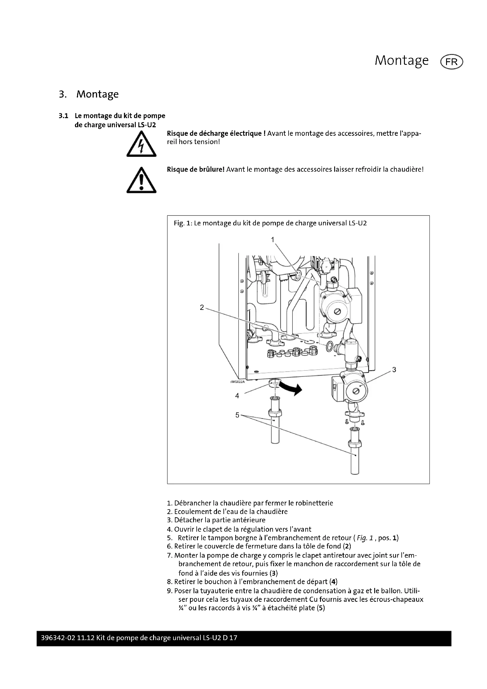 instructions Le contenu des présentes instructions est le montage de kit pompe de charge LS- U2. Veuillez également tenir compte des instructions d'installation de la chaudière gaz à condensation WGB.