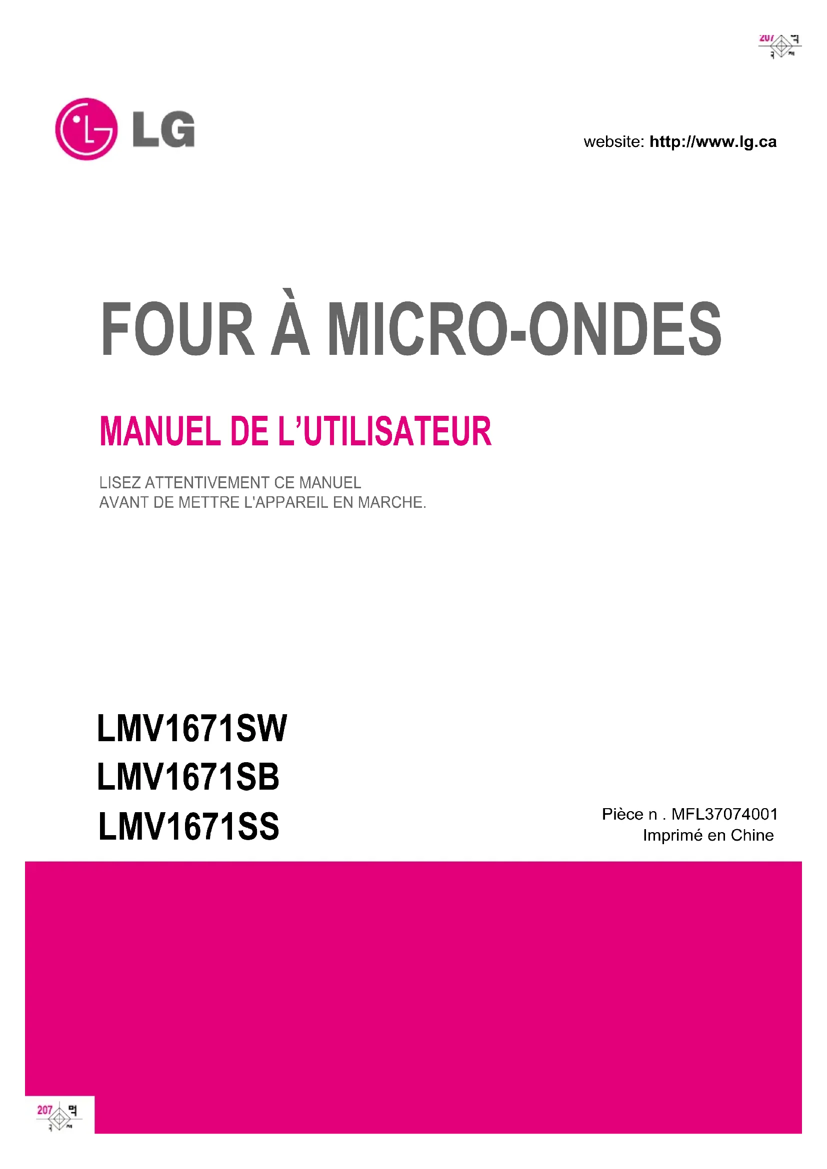 Pièce n . MFL37074001 Imprimé en Chine FOUR À MICRO-ONDES