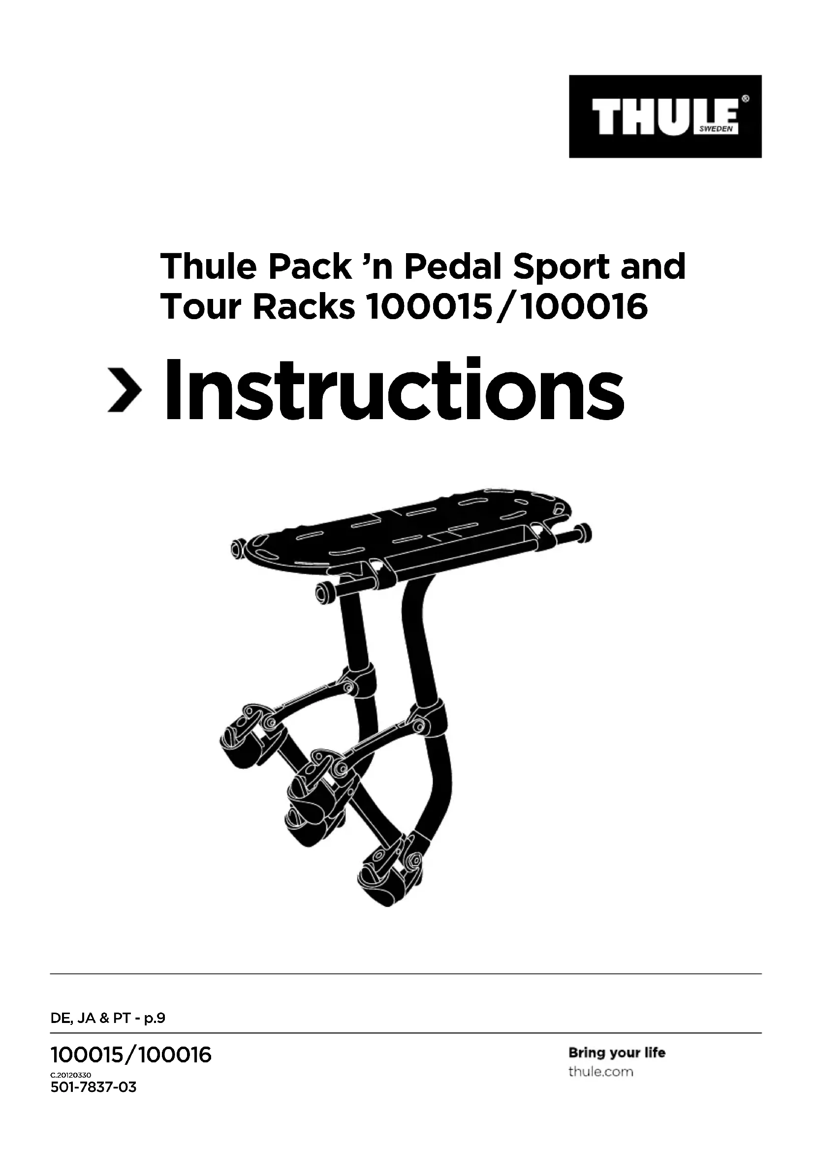 Retrouvez gratuitement la notice de l'appareil Pack 'n Pedal Sport Rack THULE au format PDF.