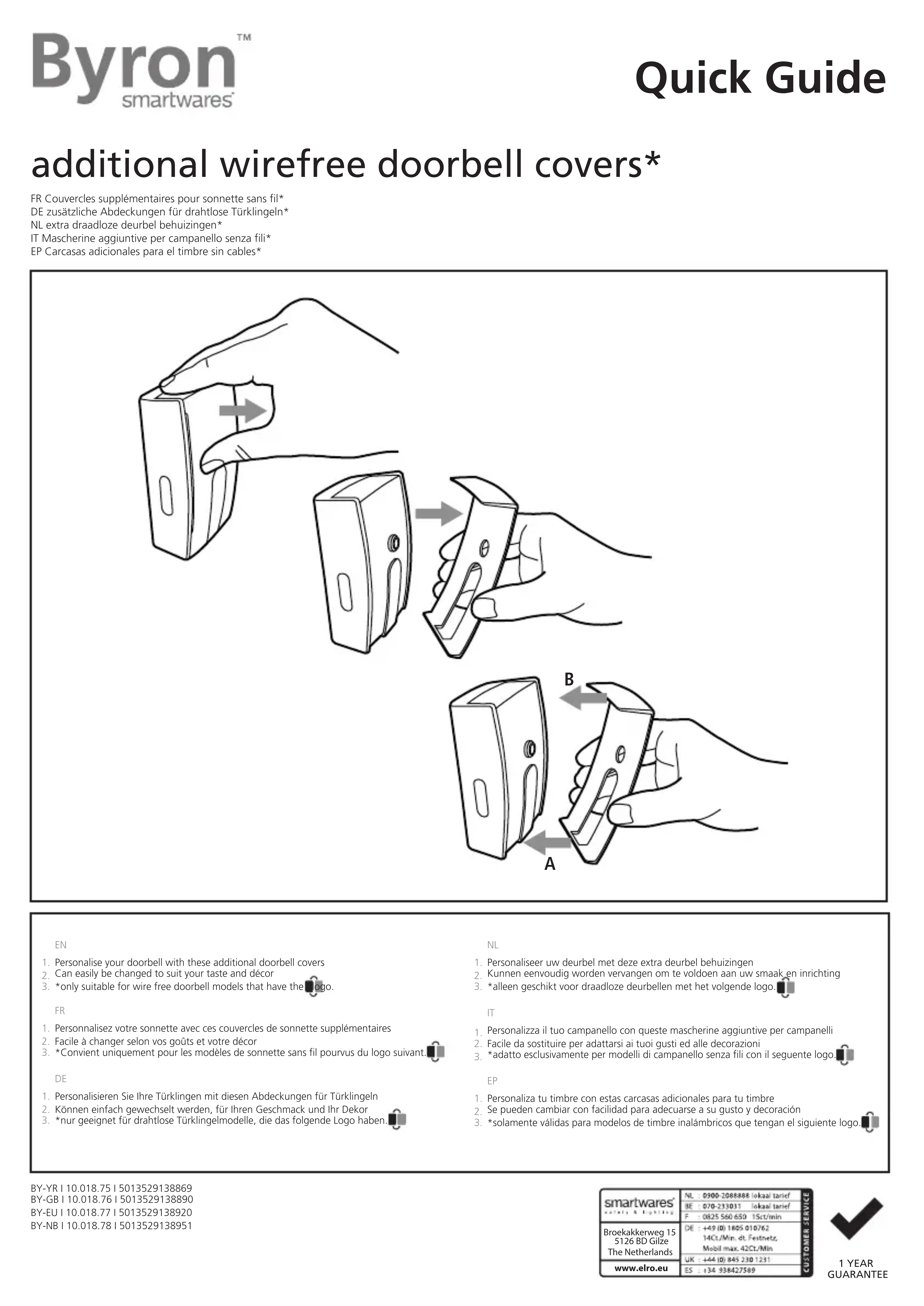 Personnalisez votre sonnette avec ces couvercles de sonnette supplémentairesFacile à changer selon vos goûts et votre décor*Convient uniquement pour les modèles de sonnette sans fil pourvus du logo suivant.