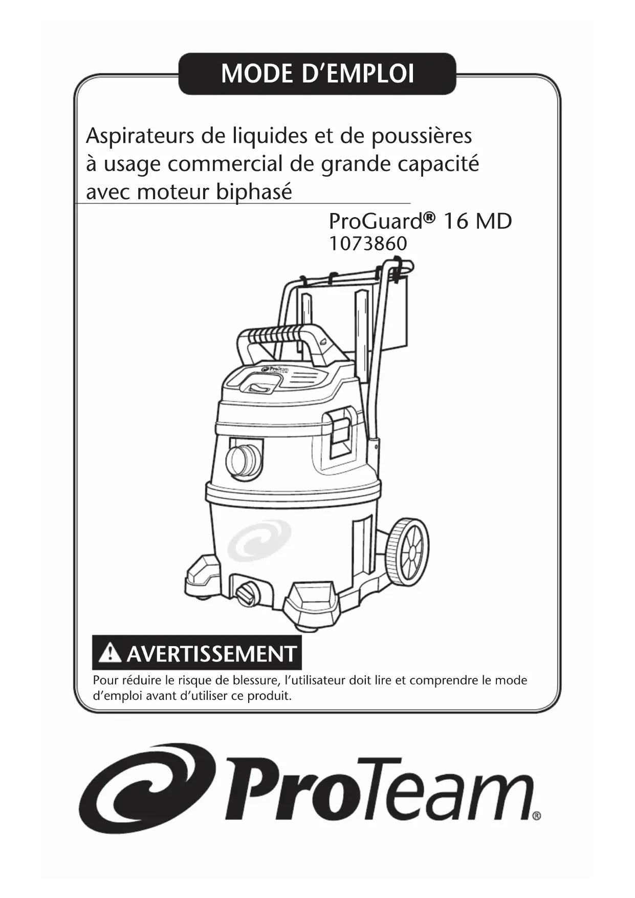 ProGuard 16 MD - Aspirateur ProTeam - Notice d'utilisation et mode d'emploi gratuit