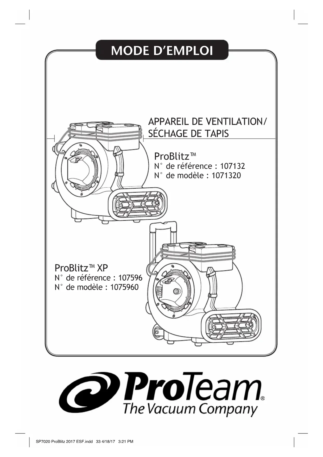 ProBlitz™ N° de référence : 107132 N° de modèle : 1071320 ProBlitz™ XP N° de référence : 107596 N° de modèle : 1075960 SP7020 ProBlitz 2017 ESF.indd 33 4/18/17 3:21 PM34 ProTeam