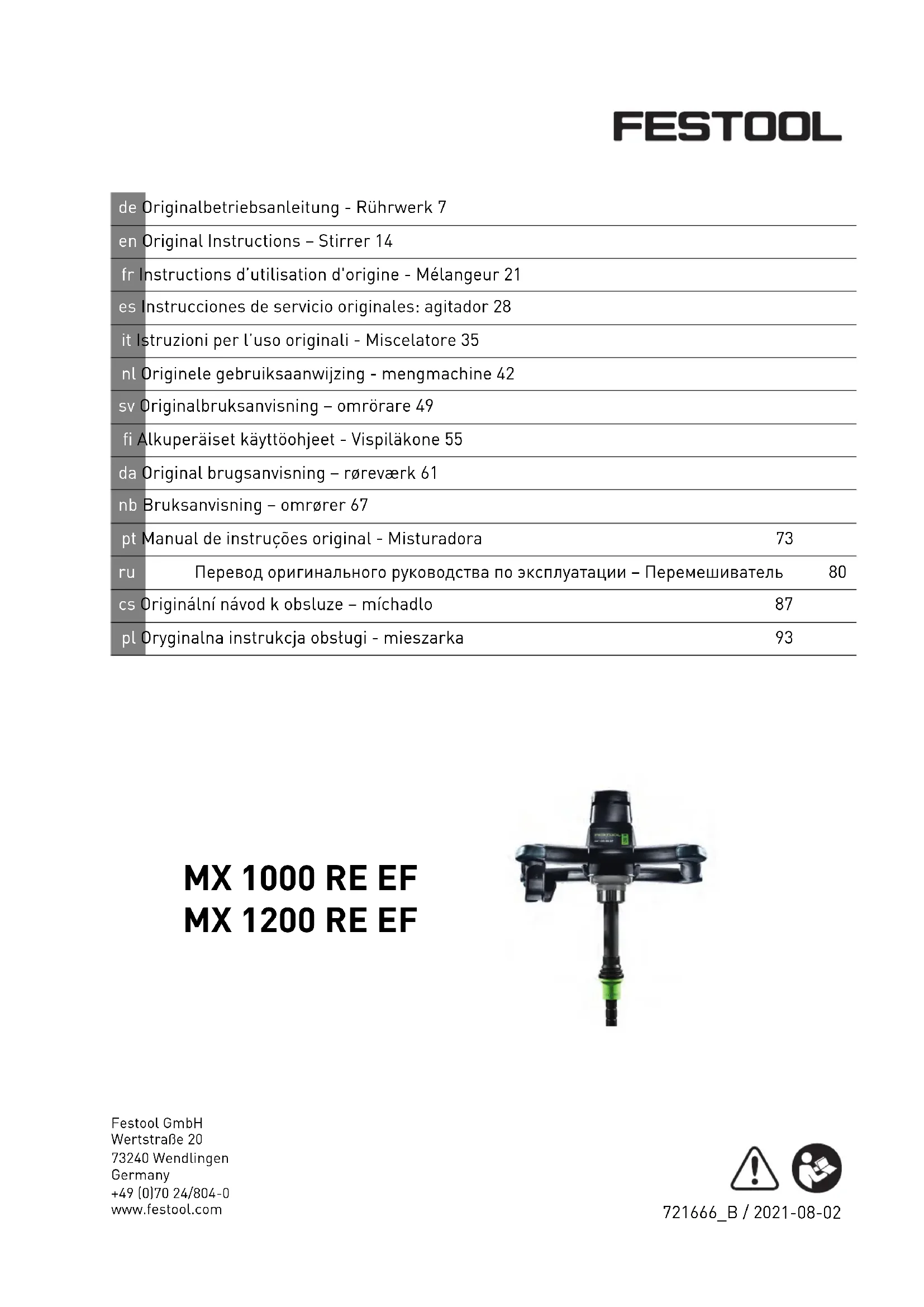 Retrouvez gratuitement la notice de l'appareil MX 1000 RE EF HS2 FESTOOL au format PDF.
