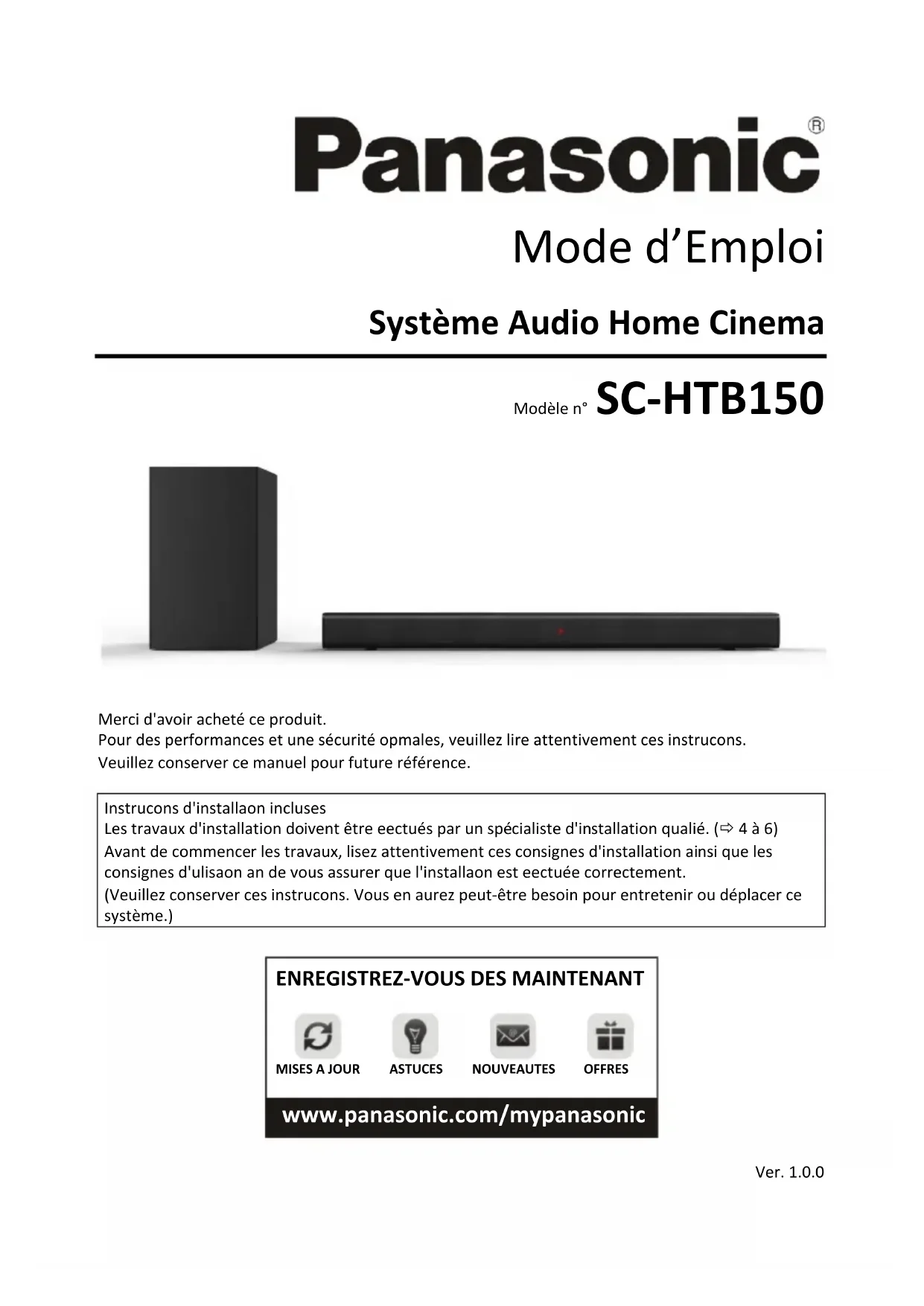 Retrouvez gratuitement la notice de l'appareil SCHTB150 PANASONIC au format PDF.