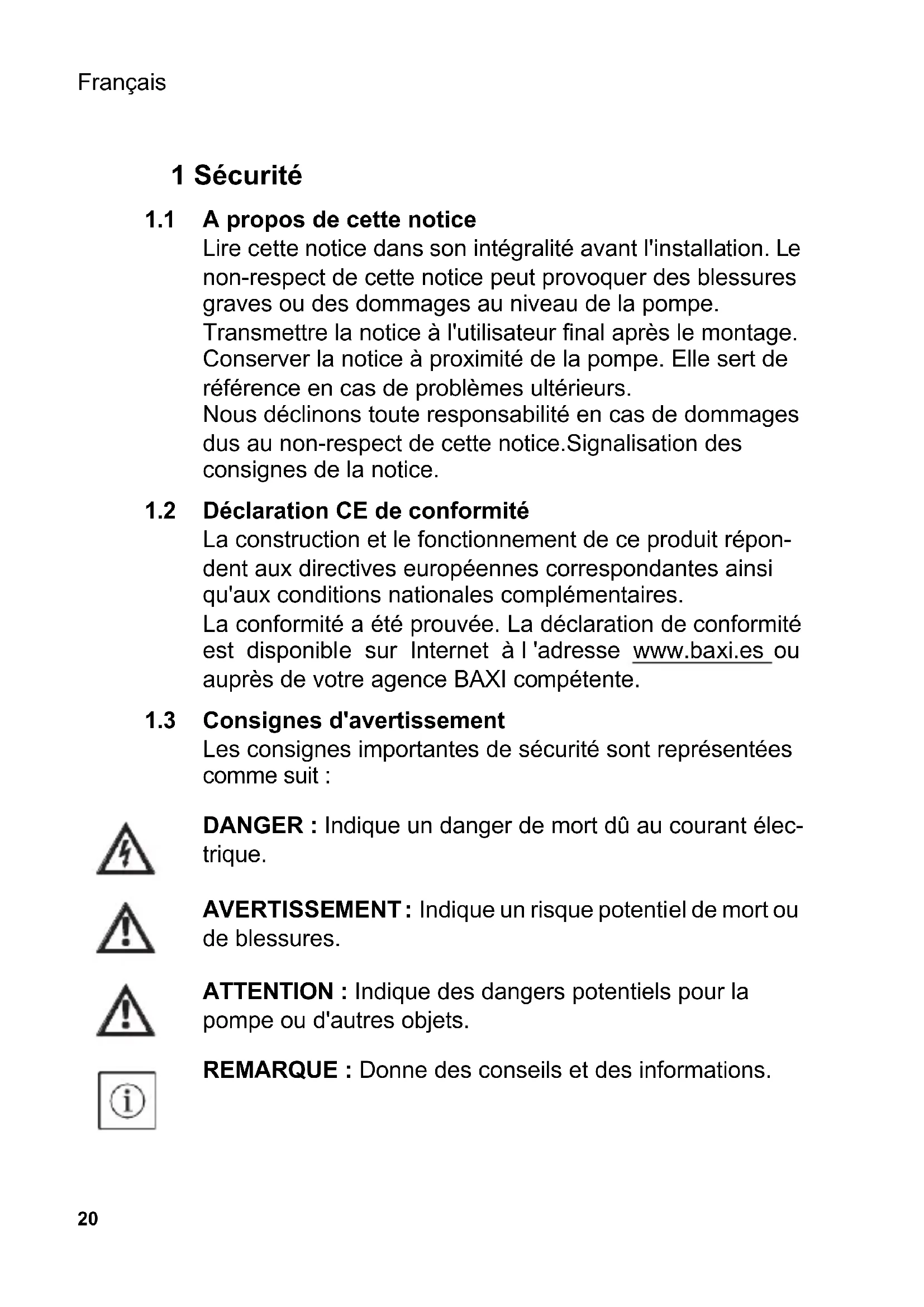 Déclaration CE de conformité La construction et le fonctionnement de ce produit répon- dent aux directives européennes correspondantes ainsi qu'aux conditions nationales complémentaires. La conformité a été prouvée. La déclaration de conformité est disponible sur Internet à l 'adresse www.baxi.es ou auprès de votre agence BAXI compétente.