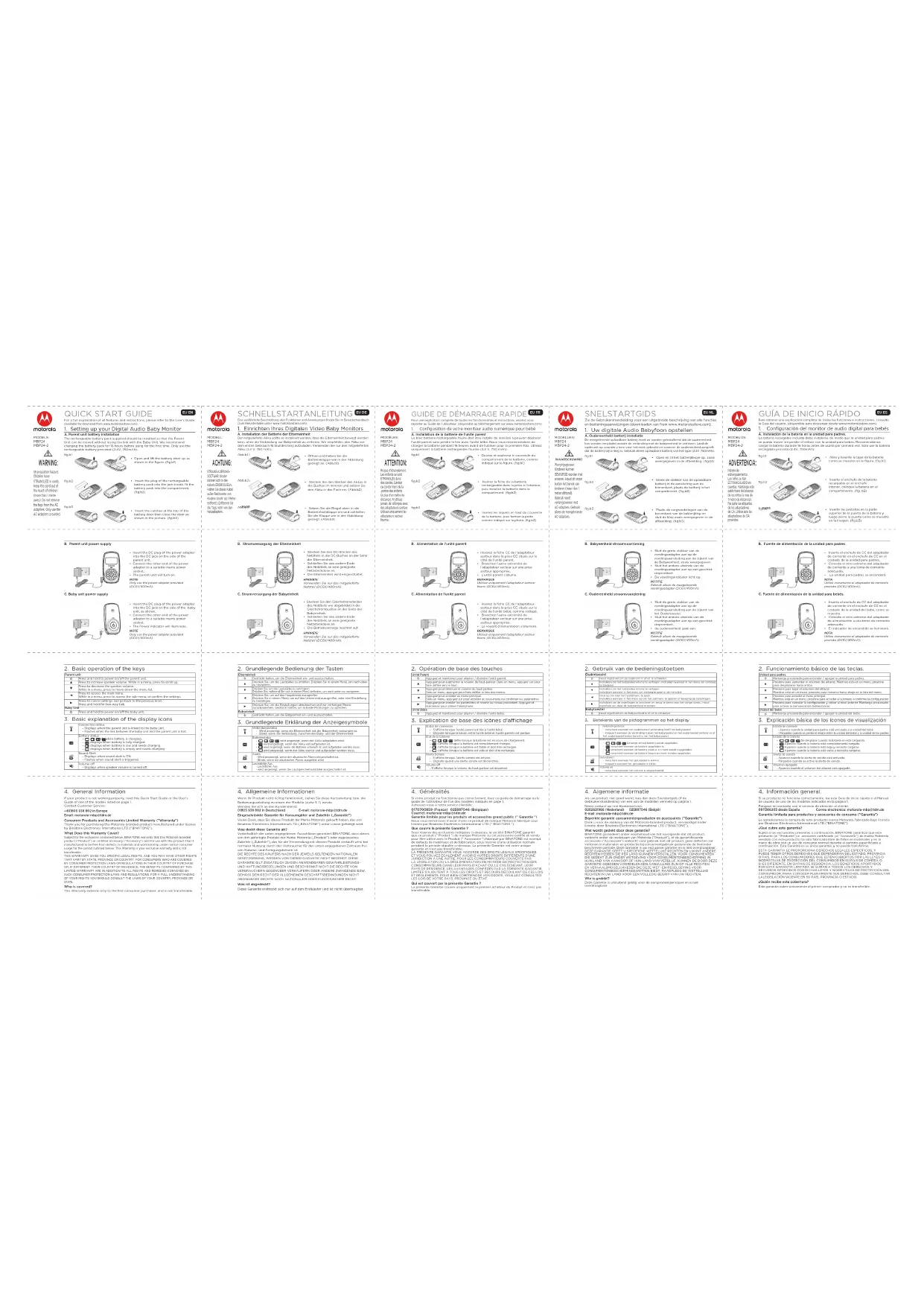 Si votre produit ne fonctionne pas correctement, lisez ce guide de démarrage ou le guide de l'utilisateur de l'un des modèles indiqués en page 1. Adressez-vous à notre service clientèle:0170700859 (France) 025887046 (Belgique) Courriel: motorola-mbp@tdm.deGarantie limitée pour les produits et accessoires grand public (" Garantie ")Nous vous remercions d'avoir choisi ce produit de marque Motorola fabriqué sous licence par Binatone Electronics International LTD (" BINATONE ").Que couvre la présente Garantie ?Sous réserve des exclusions indiquées ci-dessous, la société BINATONE garantit que ce produit (" Produit ") de marque Motorola ou cet accessoire certifié et vendu pour être utilisé avec le Produit (" Accessoire ") fabriqué par BINATONE est exempt de défauts de matériaux et de fabrication, sous réserve d’une utilisation normale pendant la période stipulée ci-dessous. La présente Garantie est votre unique garantie et n’est pas transférable.LA PRÉSENTE GARANTIE VOUS ACCORDE DES DROITS LÉGAUX SPÉCIFIQUES ET VOUS POUVEZ ÉGALEMENT AVOIR D’AUTRES DROITS DIFFÉRENTS D’UNE JURIDICTION À UNE AUTRE. POUR LES CONSOMMATEURS COUVERTS PAR LA LÉGISLATION OU LA RÉGLEMENTATION EN MATIÈRE DE PROTECTION DES CONSOMMATEURS DANS LEUR PAYS D'ACHAT OU, LE CAS ÉCHÉANT, LEUR PAYS DE RÉSIDENCE, LES AVANTAGES CONFÉRÉS PAR LA PRÉSENTE GARANTIE LIMITÉE S'AJOUTENT À TOUS LES DROITS ET RECOURS DÉCOULANT DE CES LOIS ET RÈGLEMENTS. POUR BIEN COMPRENDRE VOS DROITS, VEUILLEZ CONSULTER LES LOIS DE VOTRE PAYS, PROVINCE OU ÉTAT.Qui est couvert par la présente Garantie ?La présente Garantie couvre uniquement le premier acheteur du Produit et n’est pas transférable.