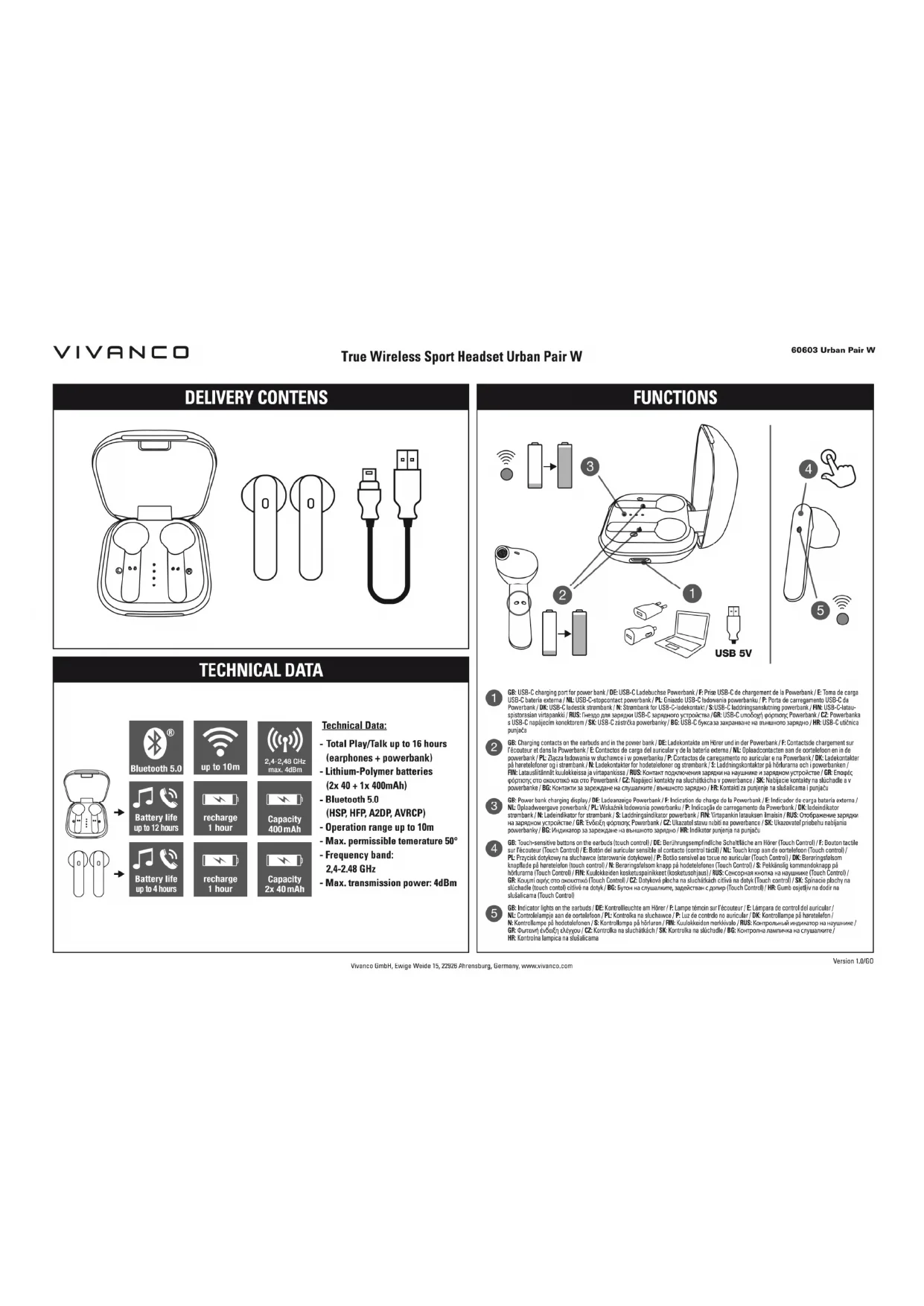 Retrouvez gratuitement la notice de l'appareil Urban Pair VIVANCO au format PDF.